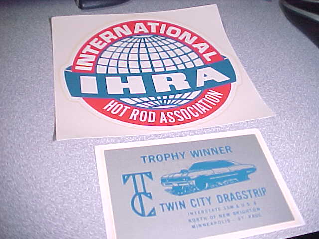 IHRA Racing water slide decal and Minnesota twin cities dragstrip decal. Both originals.This ad is for the moderators only. Whichever one PMs me first will get these at no cost ,includes free shipping.