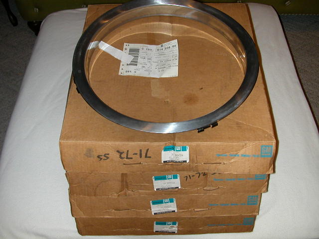 set of 4 NOS 15x7 5 spoke trim rings with the black clips for all 70-81 Z/28 Camaro's and 71-72 Chevelle SS GM P/N 3984524