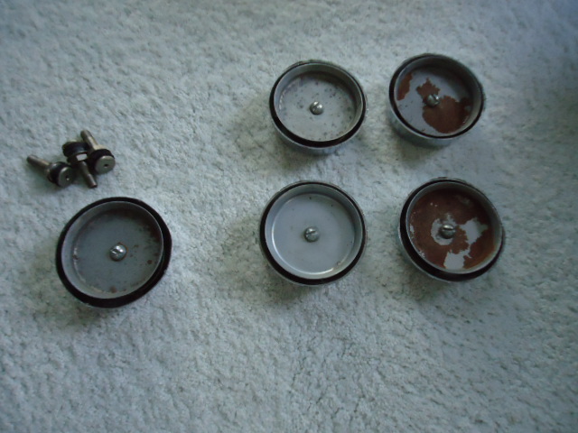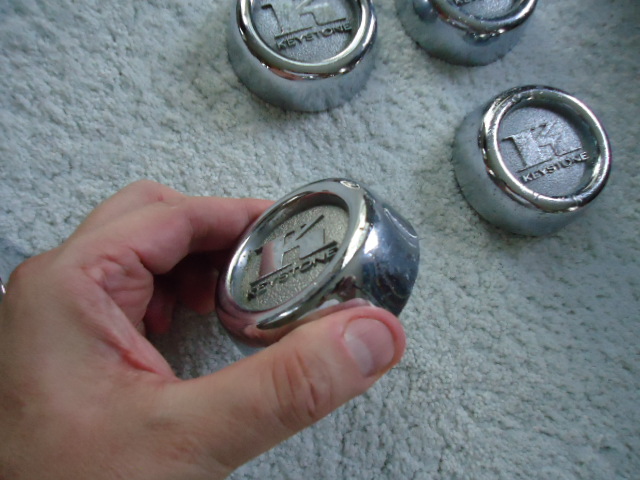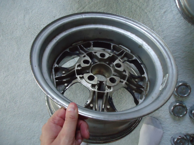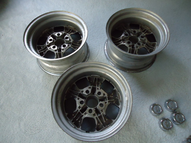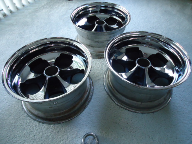 Three vintage 15X8 wheels from 1975 in near mint condition. No rust,no pits,no curb rash,no damage,no issues.Straight & true. Original chrome plating is near flawless.These were in storage for decades.All have MADE in USA on them,not like todays made in Mexico with the cheaper alloy as well.These are the early Unilug design WITHOUT the lug shoulder recess,like the later 1980's & on have. I know it's hard to photograph flaws in chrome,(and boy I tried),but these pictures speak for themselves.There isn't any.Dust particles show. Black insets are brilliant too.All have their SEMA tag. Tire valves included. 5 heavy original center caps with retainers..1 is the mid 70's design with the squared off shoulder,the other 4 are matching & are the early 70's rounded shoulder design.All are made of potmetal.They have gentle piting and I had a plater here quote me $30 ea. a cap to do that.He said the pitting will not effect the final shine.If I give him all 5,he said it be less.I think they're fine the way they are. Each wheel is $100 w/valve +ship. Early rounded 4 caps are $50 ea. w/retainer +ship. Later single squared cap is $25 w/retainer +ship. |