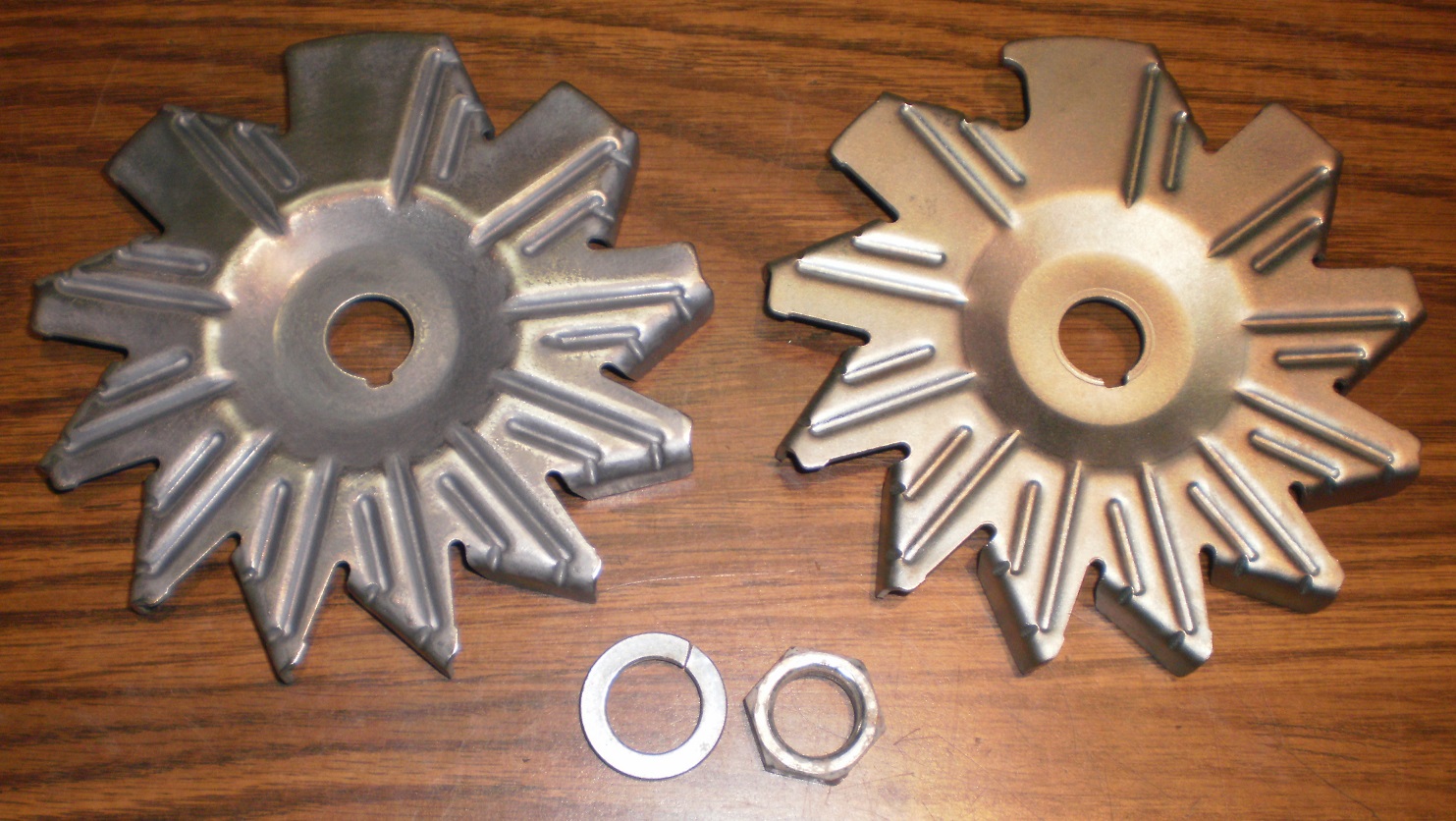 1-High Performance Tabbed Fan with Natural polished front finish $50 2-High Performance Hook Fan with Special Plating, Washer/Bolt and the number "3" stamped on the back $75. Both are now <span style="color: #FF0000">*SOLD*</span> Shipping $8 to Lower USA or Canada. Paypal "Friends & Family"