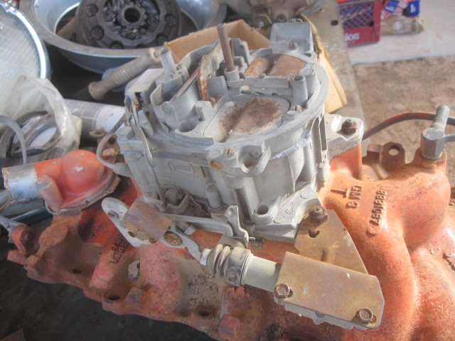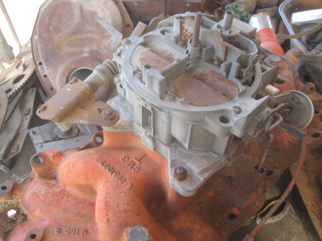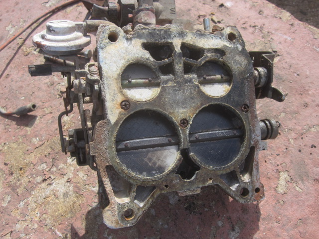 Selling a complete quadrajet carburetor just removed from a cast iron intake manifold. The intake is available also if someone wanted it for additional costs. The carb is stamped 7029200 EE. Comes with the original bolts, nuts, vacuum line, and turbo 400 kick down as shown. The carb is stuck shut and will need a complete rebuild. I squirted a little penetrate on it but no luck. The price is 275 Shipped lower 48 USA. Larry 520-349-2337