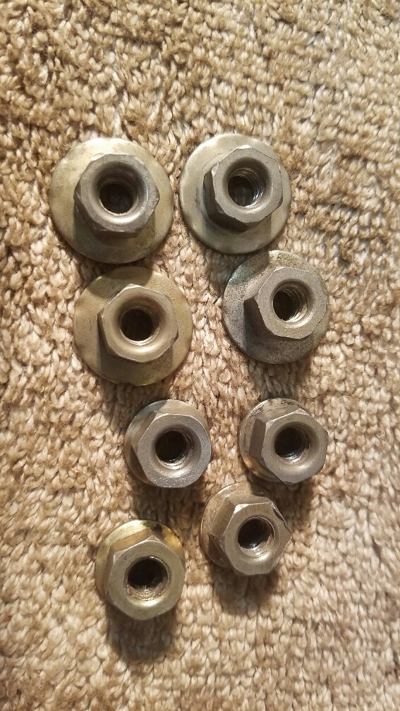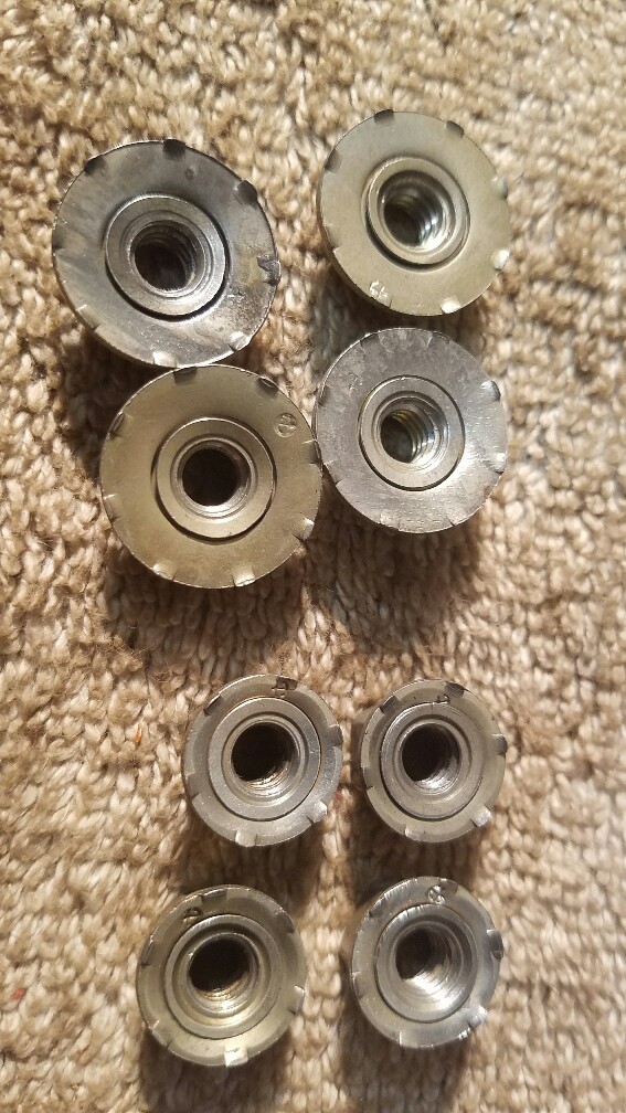 67 through 69 rear spoiler mounting hardware. 4 nuts with large washer for nuts with small washers. All original Survivor condition with 80% original gold plating. All have anchor stamping. $50 a set shipped to the lower 48, two sets available.