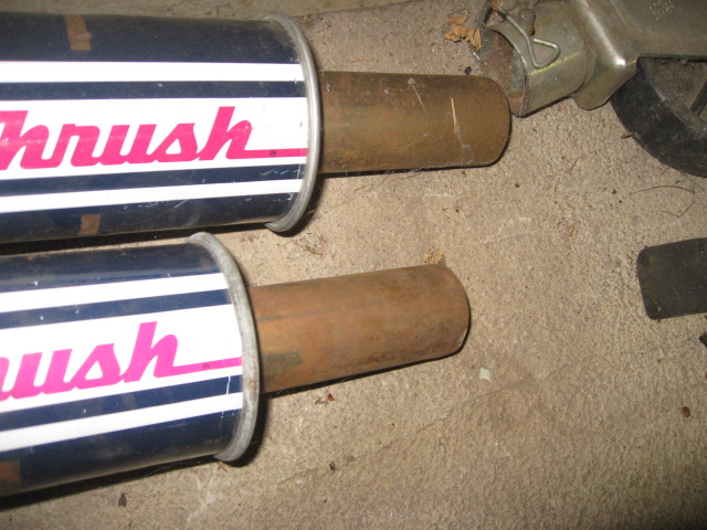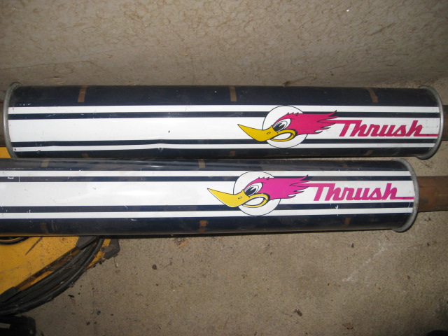 Here is a set of orig old thrush mufflers never used been sitting around for yrs 2"inlet 2 1/2" outlet ,paint is really nice but they are not perfect ,was gonna use on a day 2 proj but it never happened asking $300 thanks 570-854-0896