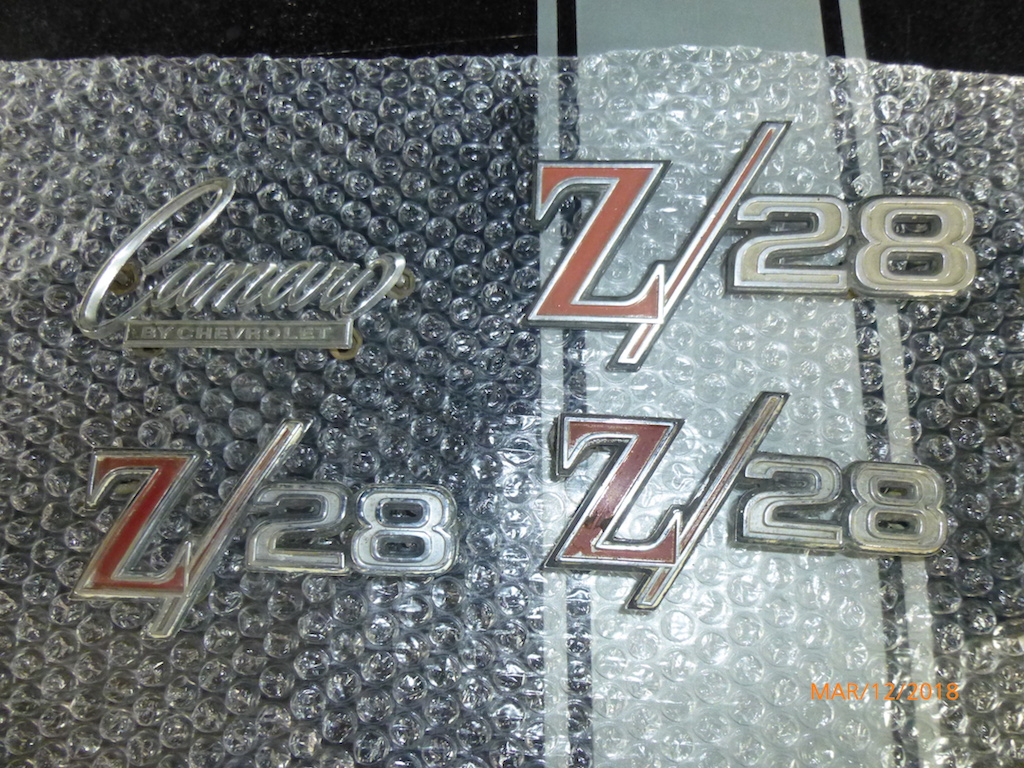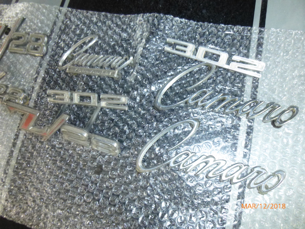 This is a complete set from the same 58,000 mile 69 Z28. They aren't perfect as far as inside paint goes but there is no pitting and they all include the original mounting nuts with the exception of the grill emblem. I do not have the retainer for the grill emblem. I have not tried to clean them up.