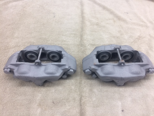 Twin piston calipers, left and right, 5455533 and 530, dated 346 - 7.