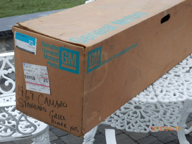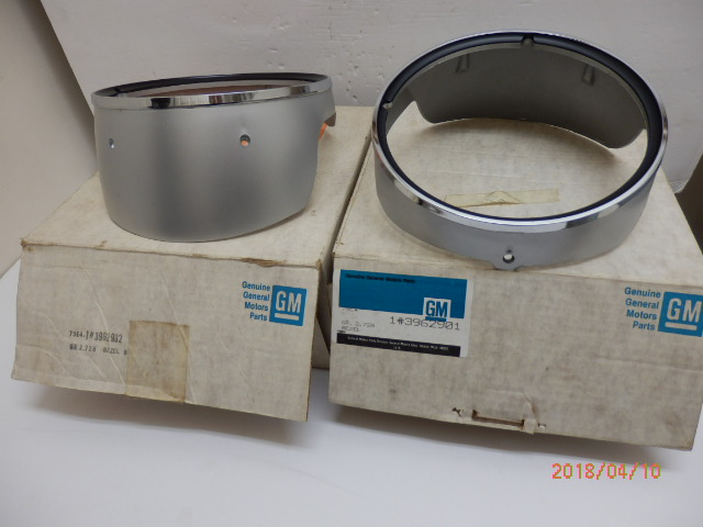 This is a pair of NOS 69 Camaro headlight bezels with the chrome trim, the boxes are dated 1983.