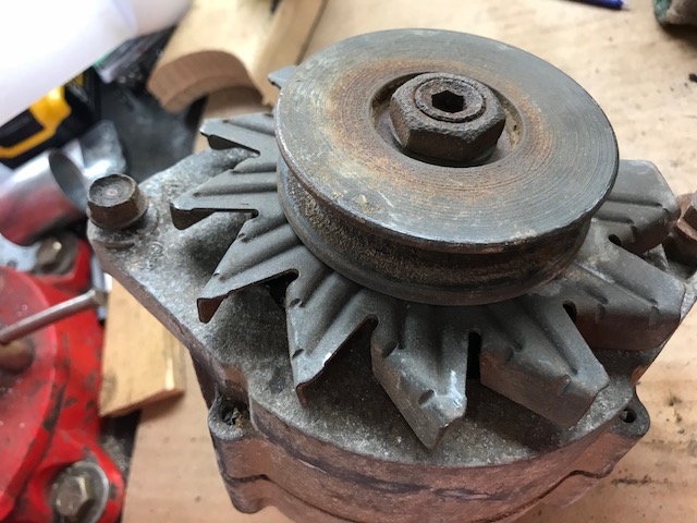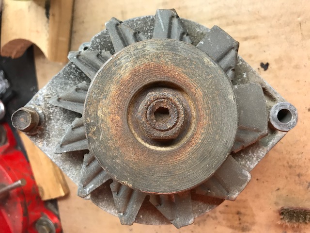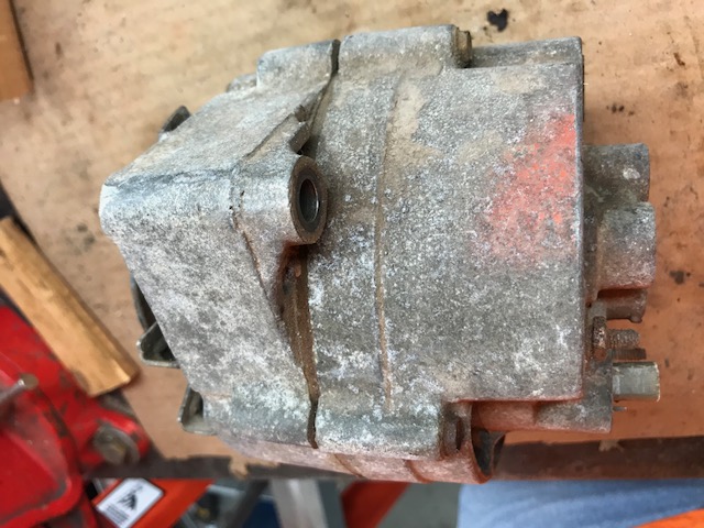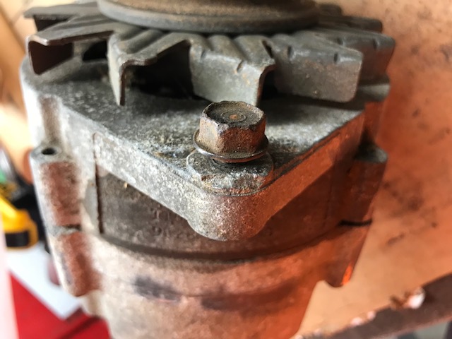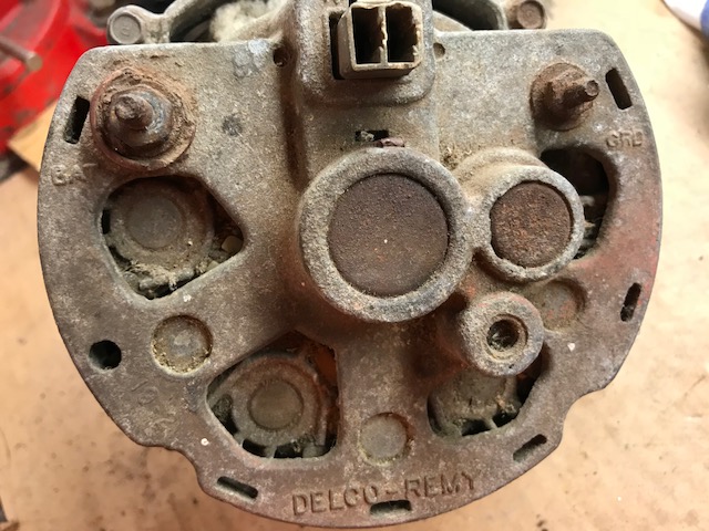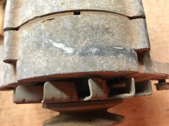 837 Alternator dated 9-L-28. Looks like it was stored somewhere that there was moisture. It spins freely. Please note the chip on the front side of the upper mounting boss. Once it is mounted the chip shouldn't show. There is also pitting on the face of the armature shaft and the pulley nut. $1,050.00 or trade towards a March or early April 1969 837 in unrestored condition. Car is a 04C Camaro. Thanks! John