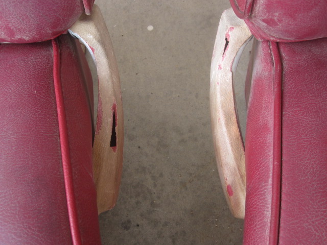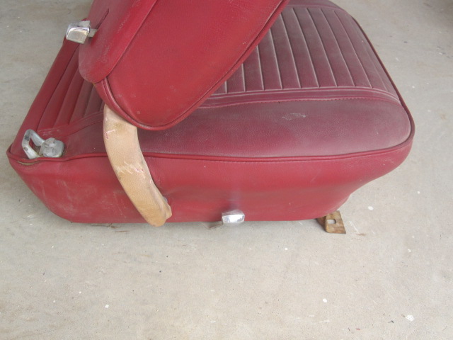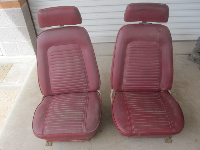 Selling a set of red bucket seats for a 69 Camaro. There are some tears in them as shown. I did the big one with the track of the other one loading them. The plastic sides are dry rotted out. The passenger side is missing the knob. The headrests are in decent shape. Good set of cores. They are old and dry good AZ stuff. Price is 500 ff shipped lower 48 USA. Larry 520-349-2337