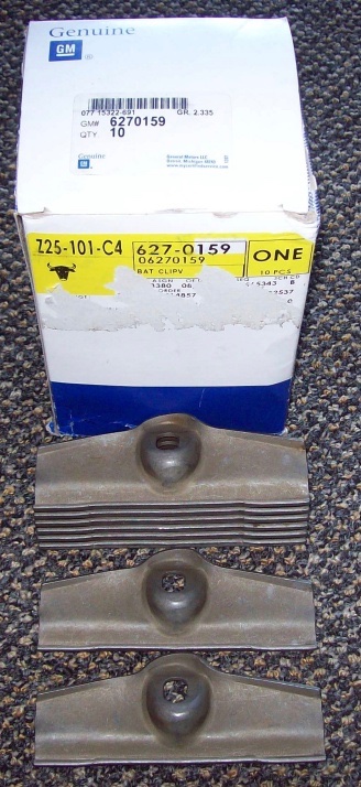 Picked up a GM NOS box with 10 of these 6270159 Battery Hold Down Brackets.