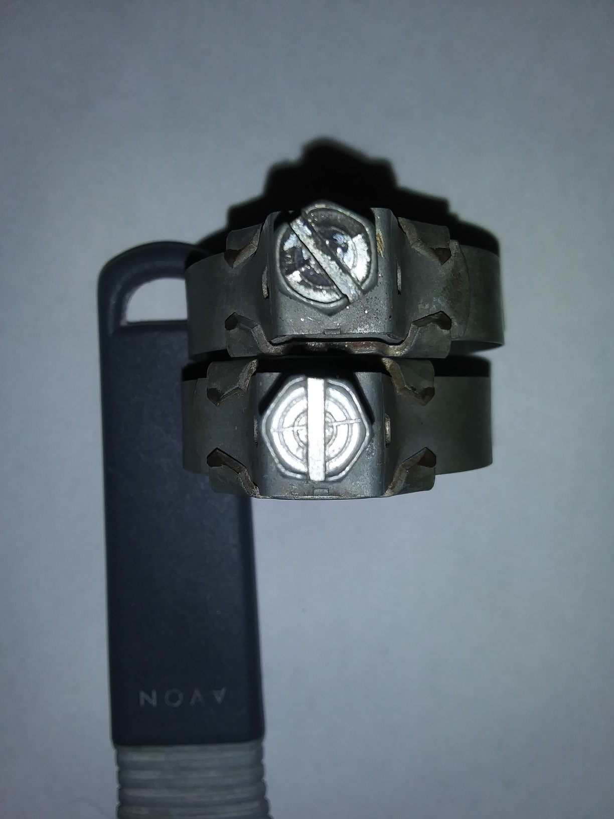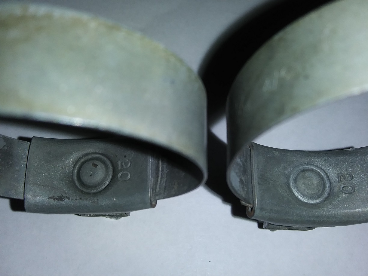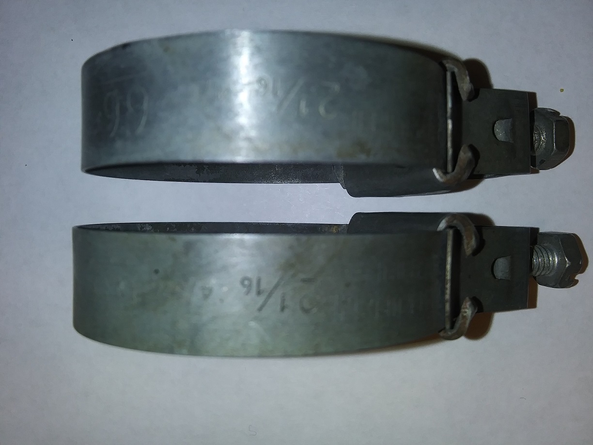 2 used 21/16 wittek upper radiator hose clamps dated 4/67 off a 1968 z28 at 18,000 miles over 25 years ago.marked 20 on the inside.66 on the outside by the 4/67 date.these are very nice used original clamps. $130.00