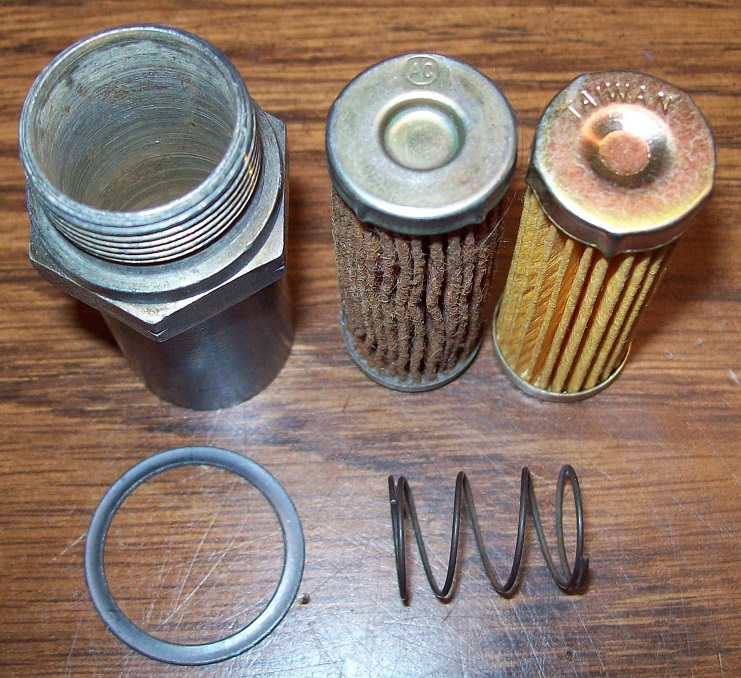 One filter is the Original "AC" and the other is a Brand New Reproduction. Original Spring and Gasket. Only the Assembly line housings had the notched lines on the big bolt on the housing. Fits many Q-Jet Carbs with 2+1/4" extension housing for the long type filter. $35 USD with FREE Shipping.