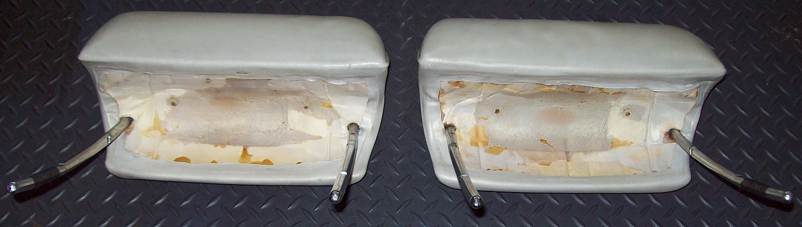 They are dated both 6-12-69 (June 12 of 1969). IMO also a good date for 1970 built very early production cars. They have no cracks and the headrests have never been Dyed or Painted. I only cleaned both of them with SEM plastic cleaner. Includes the push in Black Tabs for the under plate covers but the plate covers were so far gone I trashed them as they were all chalky, deteriorated and cracked in many spots. These are not white they have a Pearl Parchment color to them and Reproduction companies to this day still don't make Pearl Ivory Head Rests. Replace those UGLY head rest covers with REAL GM molded plastic head rests. I put black electric tape to surround the date codes so when you get them you'll be able to spot the date codes, the tape can be easily removed if you like. $350 for the pair. Payment for Paypal "Friends" Shipping $40 to USA or Canada