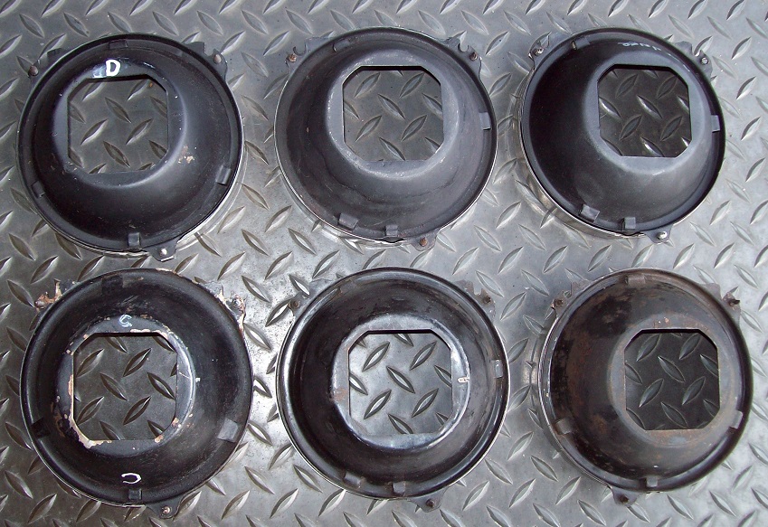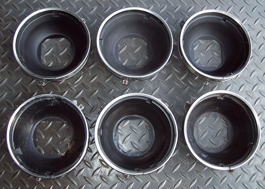 6 Headlight Buckets with Stainless Trim and screws for the price of 4. Take all 6 and cherry pick the 4 nicest ones for your car.