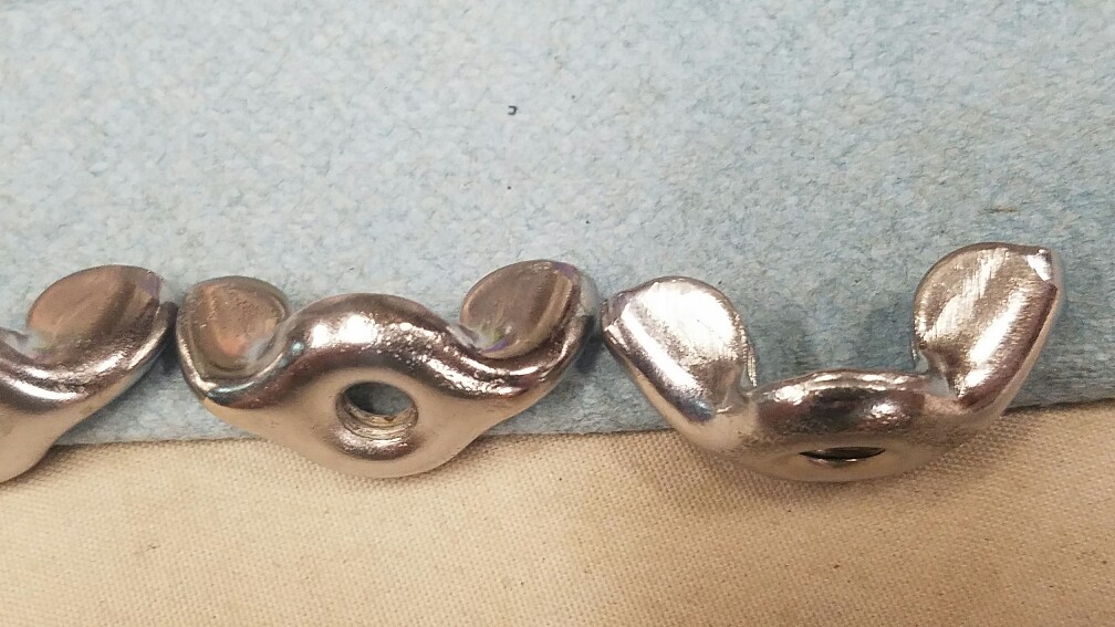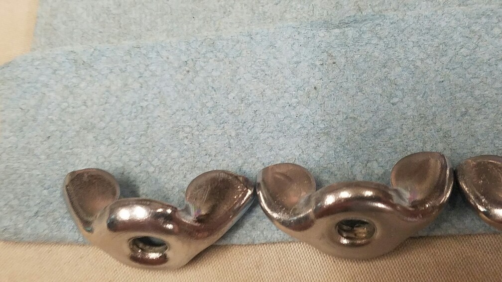 This is my third and final batch all others have sold out. I have several more large flat Wing nuts. They are in excellent condition. Still have stamping marks and stress marks from the metal in forging. Very nice Chrome. Sale price $50 each ppff