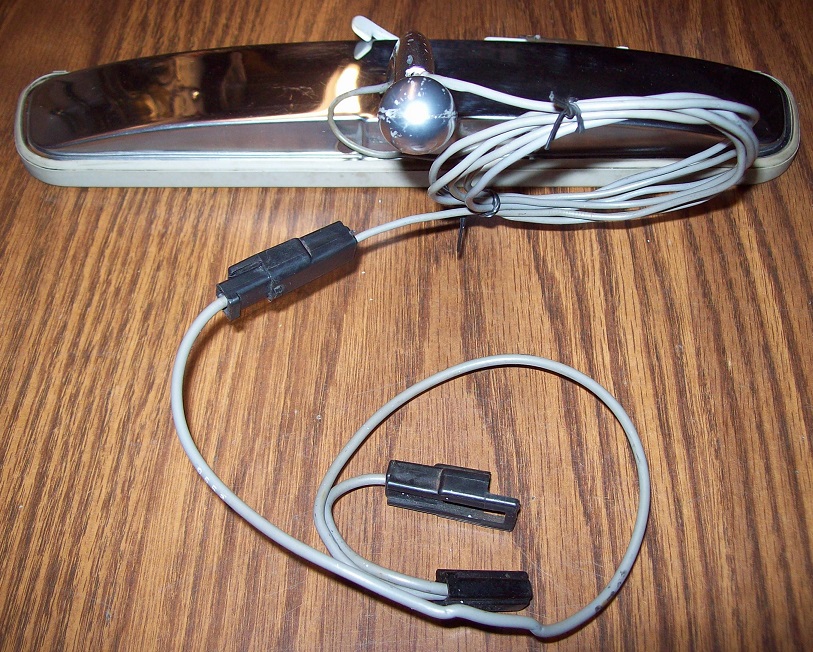 Part of the ZJ9 Auxilary Lighting group is this working Interior Map light rear view mirror. As you can see in one photo it does work just fine as I tested It. Condition is not perfect but good enough for a driver, NO spliced wires and it also has the rare two way fuse panel wiring harness. Photos pretty much reveal over all condition. Pivot ball joint is nice and tight with no play. Even if your car did not come with this Option it would be cool to add.