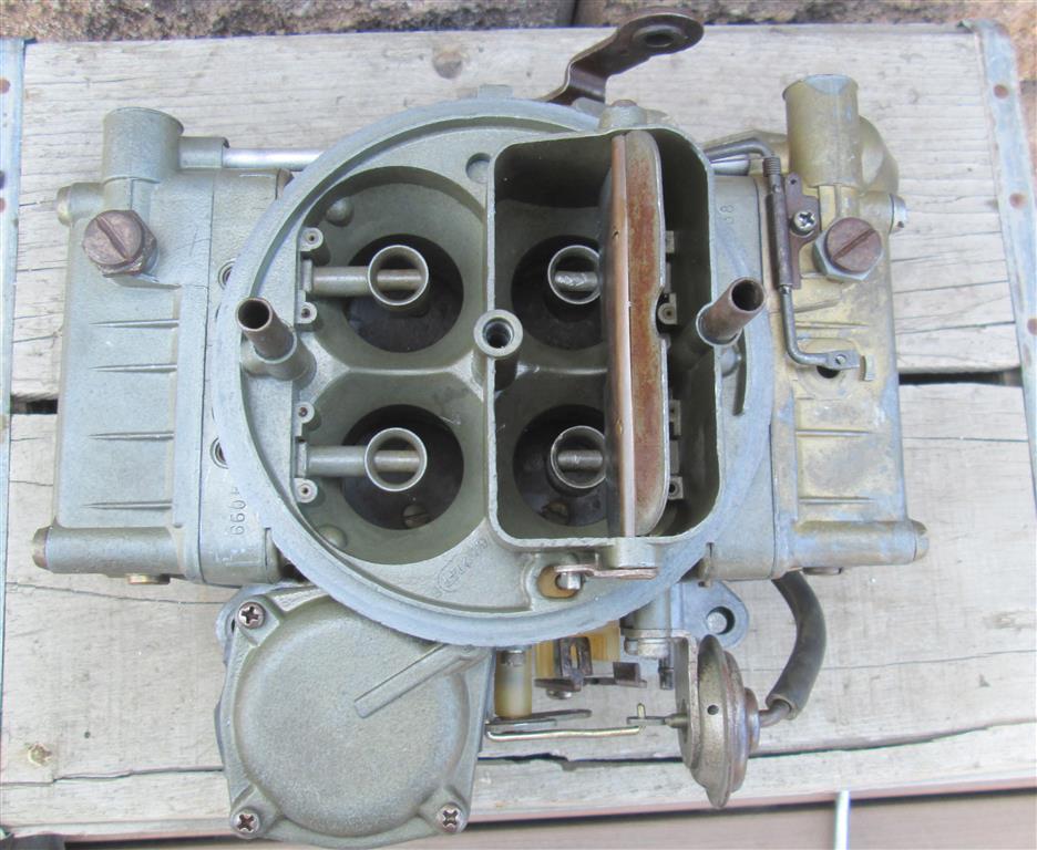 This carb is in good original condition. It is totally complete and all parts move freely. The coloring is very nice as shown. The front metering block is stamped 4658 and the rear is 4099 as shown. I removed the bowls to shown the internals are as clean at the externals. This car would be great for a survivor as is or could be restored for the nicest of cars.