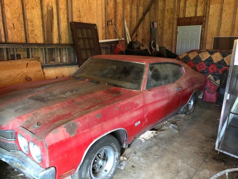 Many Chevelle and Muscle Car Fans consider the 1970 Chevelle SS to be America’s favourite Muscle car and this is a recent find out of a garage up in Ohio. This Project car is currently painted with Red/Black Stripes but is Originally a 58-58 Autumn Gold/Black Stripes car.