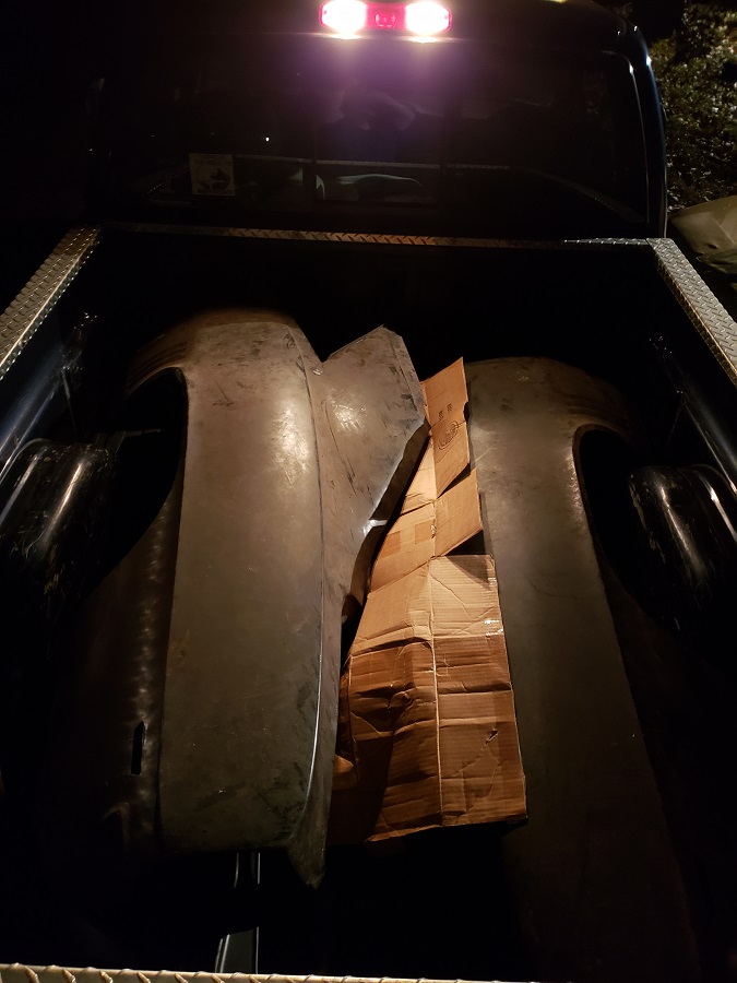 Header panel Radiator support Cowl hood Lower valance Fender extensions Standard (black) grill Left and right fenders in box Left and right door skins Left and right quarter panels (2 sets, but one pair is only good for patch panels) Trunk lid with spoiler holes Trunk Spoiler Tail light panel Cowl panel Cannot ship, will not break up $11500