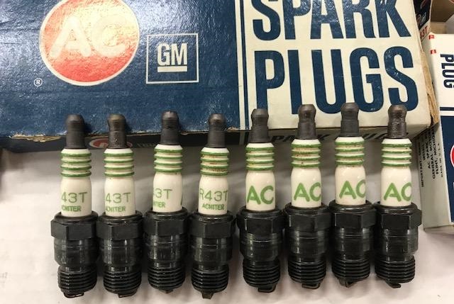NOS 5613354 R43T Spark Plug set, I have two boxes of 8. Boxes dated 1973 and are the older thin green striped Acniter II spark plugs. Applications are 1970 Camaro SS Chevelle SS Nova SS L78 396 375 HP or 1970 Corvette Chevelle SS Monte Carlo SS El Camino SS Impala SS Caprice Bel Air LS5 454 360 or 390 HP engines. These are the 1st design assembly line style 4 thin green stripes NOT one top fat green line then three thin lines which are second design.