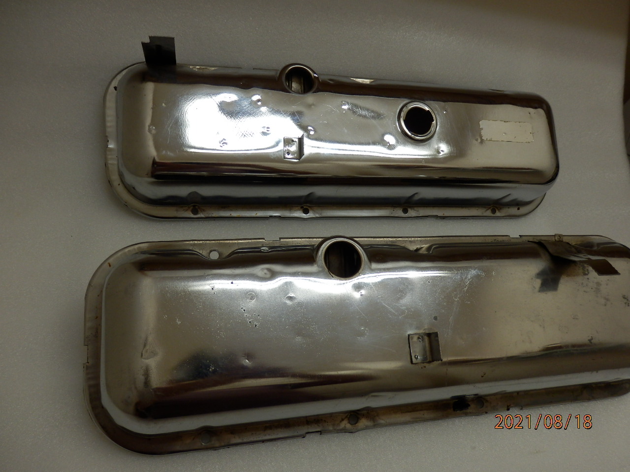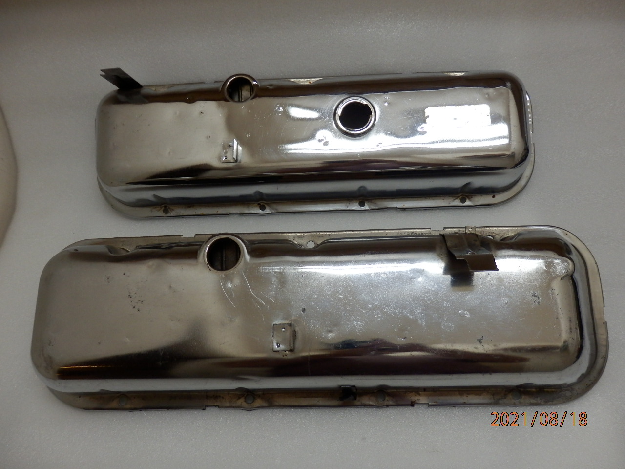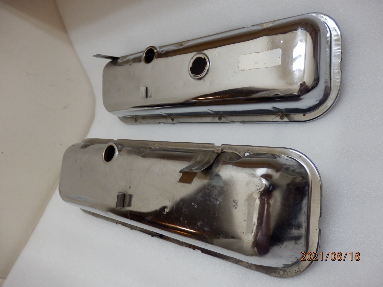 Here is an original pair of 1969 Camaro Nova assembly line valve covers with original flash chrome.