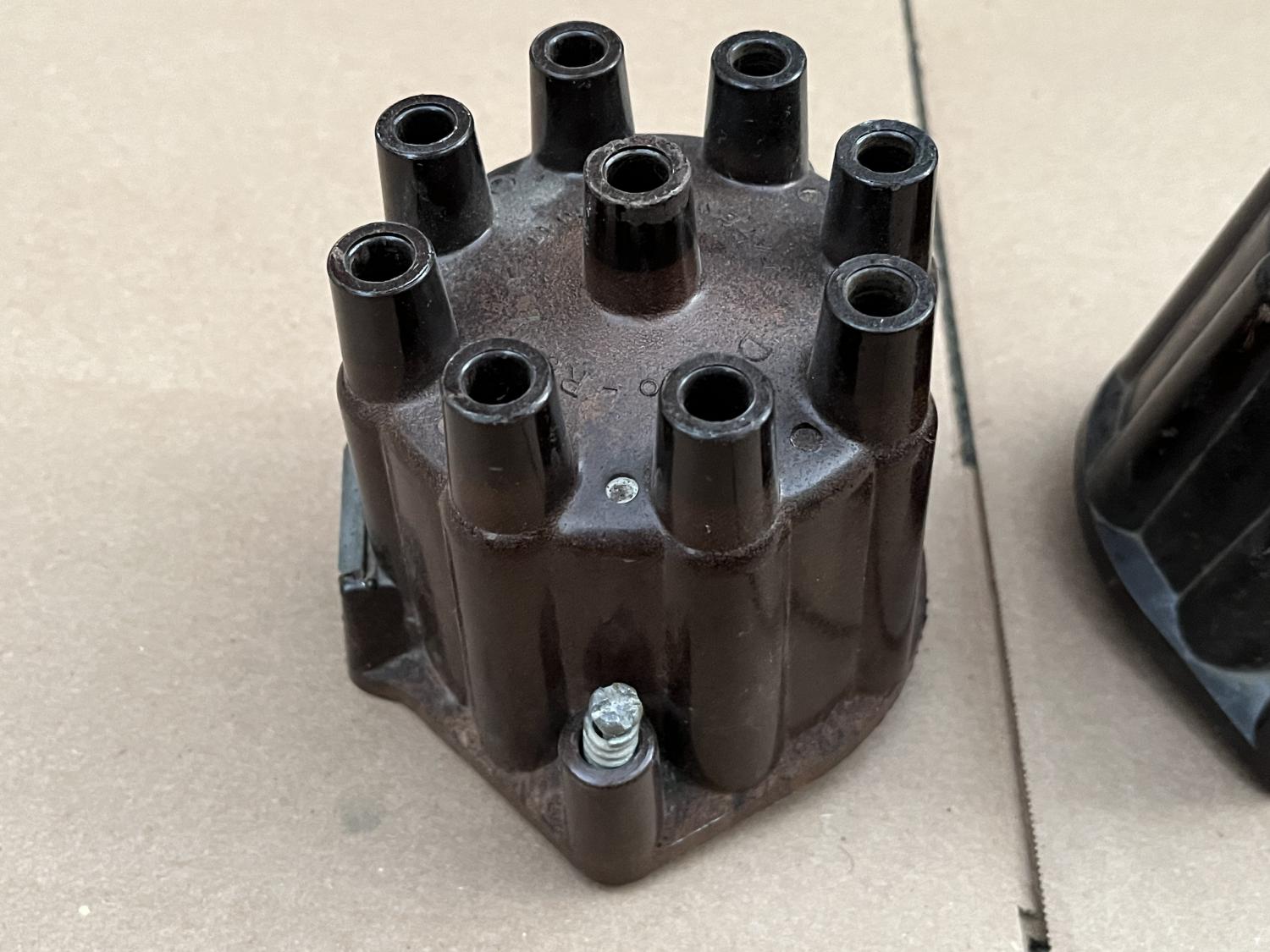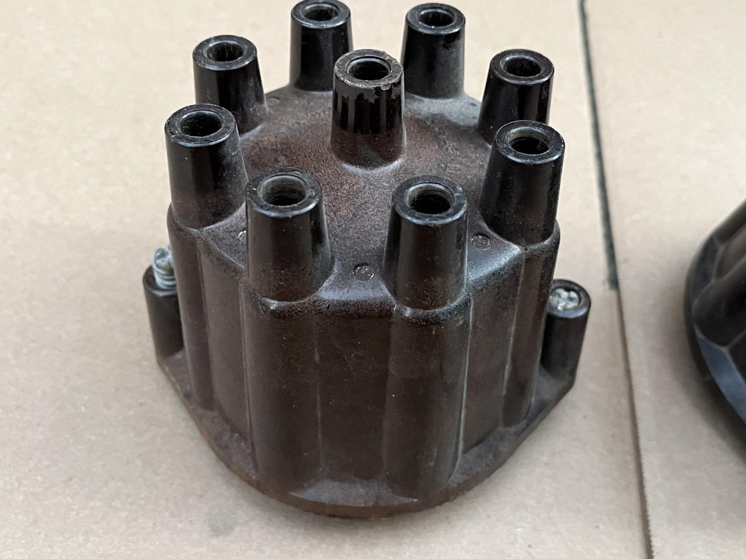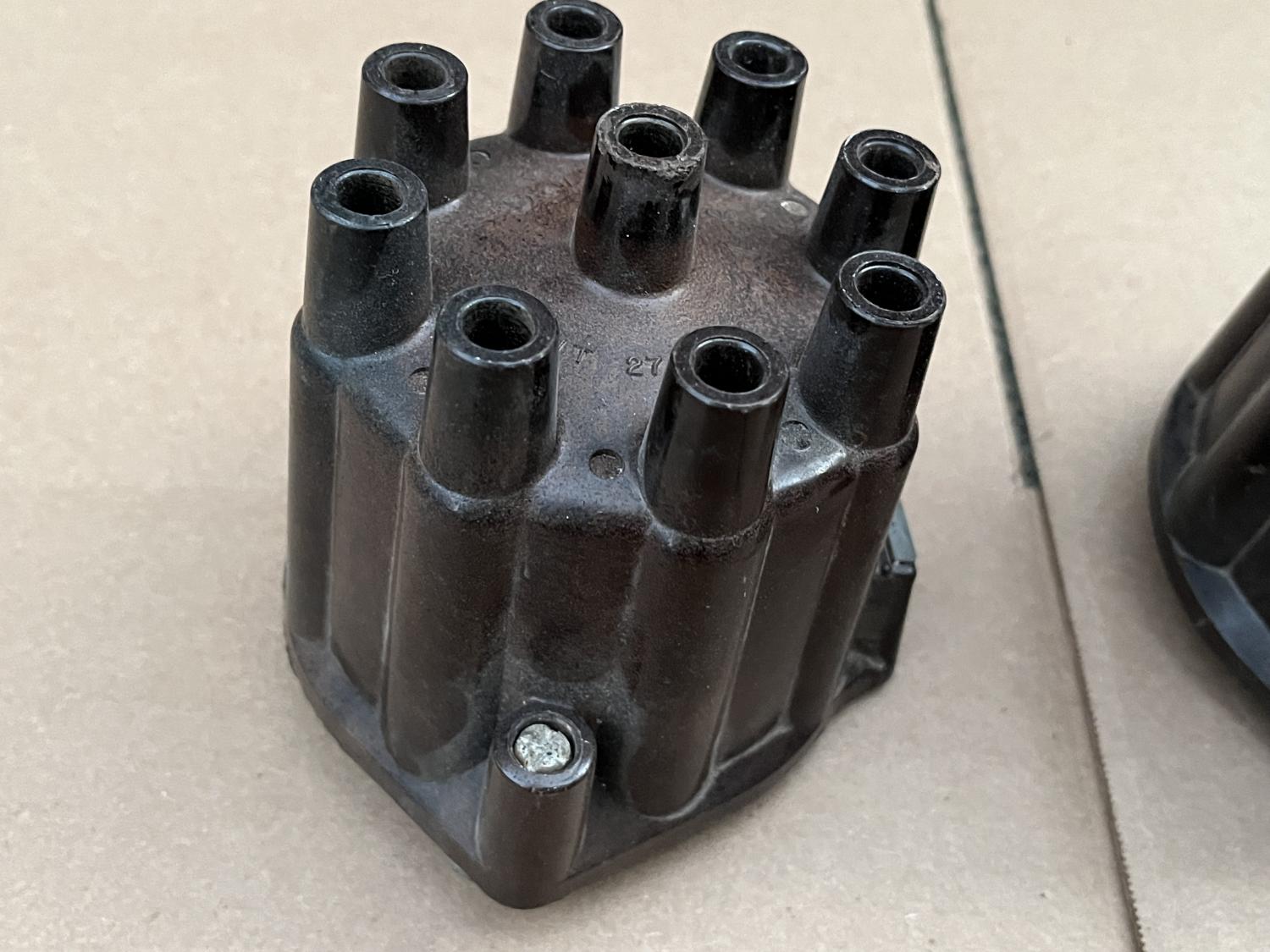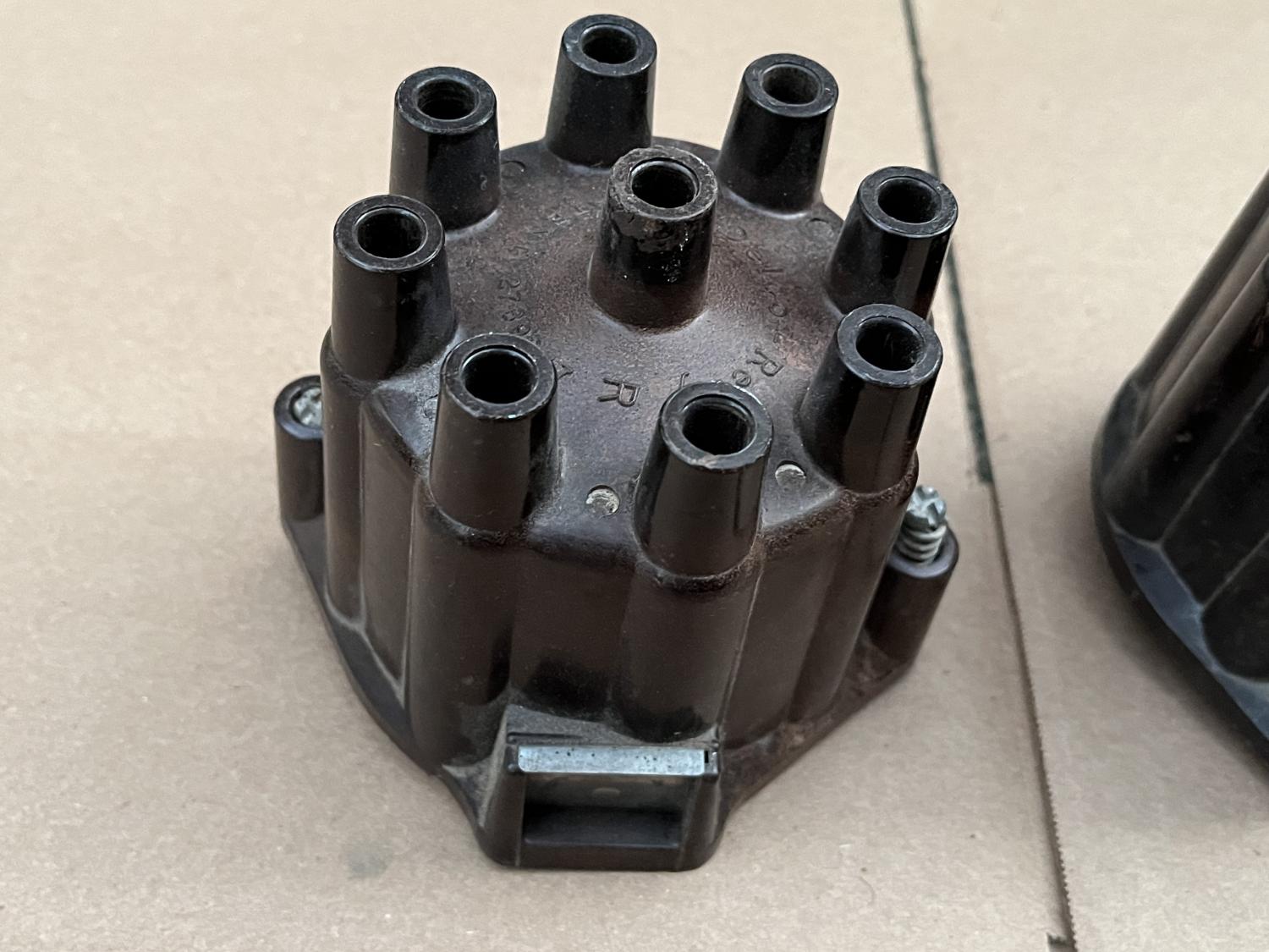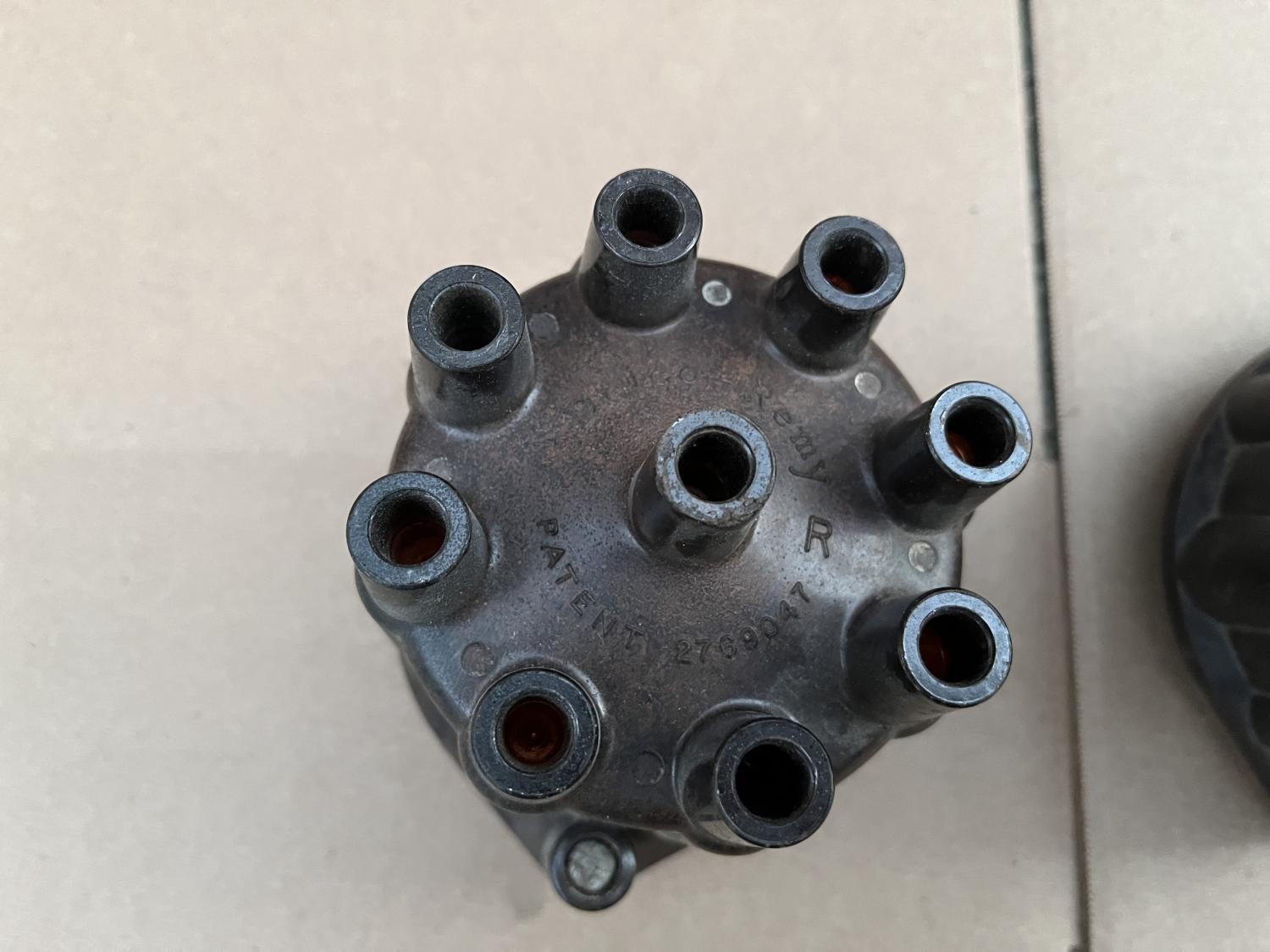 I have two used brown, copper terminal / contact distributor caps available here. could use some clean up / polish but otherwise usable - no cracks, doors work. Dusty and there might be light (engine paint?) overspray on them. First is a D309 D-309 with "patent pending" and "NO R" Second is a D309R D-309R with "patent 2769047" and a "BIG R" These are hard to find anymore and are 1968 and earlier and the resistor one I think, 1969. And I think these are often found on T.I. Transistorized Ignition cars rather than the black ones with the aluminum terminals / contacts. $125 PPG each shipped to the US. Thanks all, Anthony |
