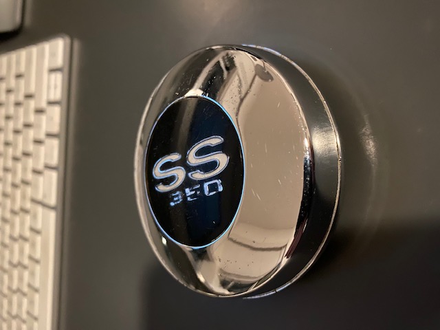 Nice clean used horn/center cap for SS 350 1967 Camaro. It's a nice piece, shiny chrome, soft supple gasket, some very light hazing on the insert that would polish right out. $45 + ride.