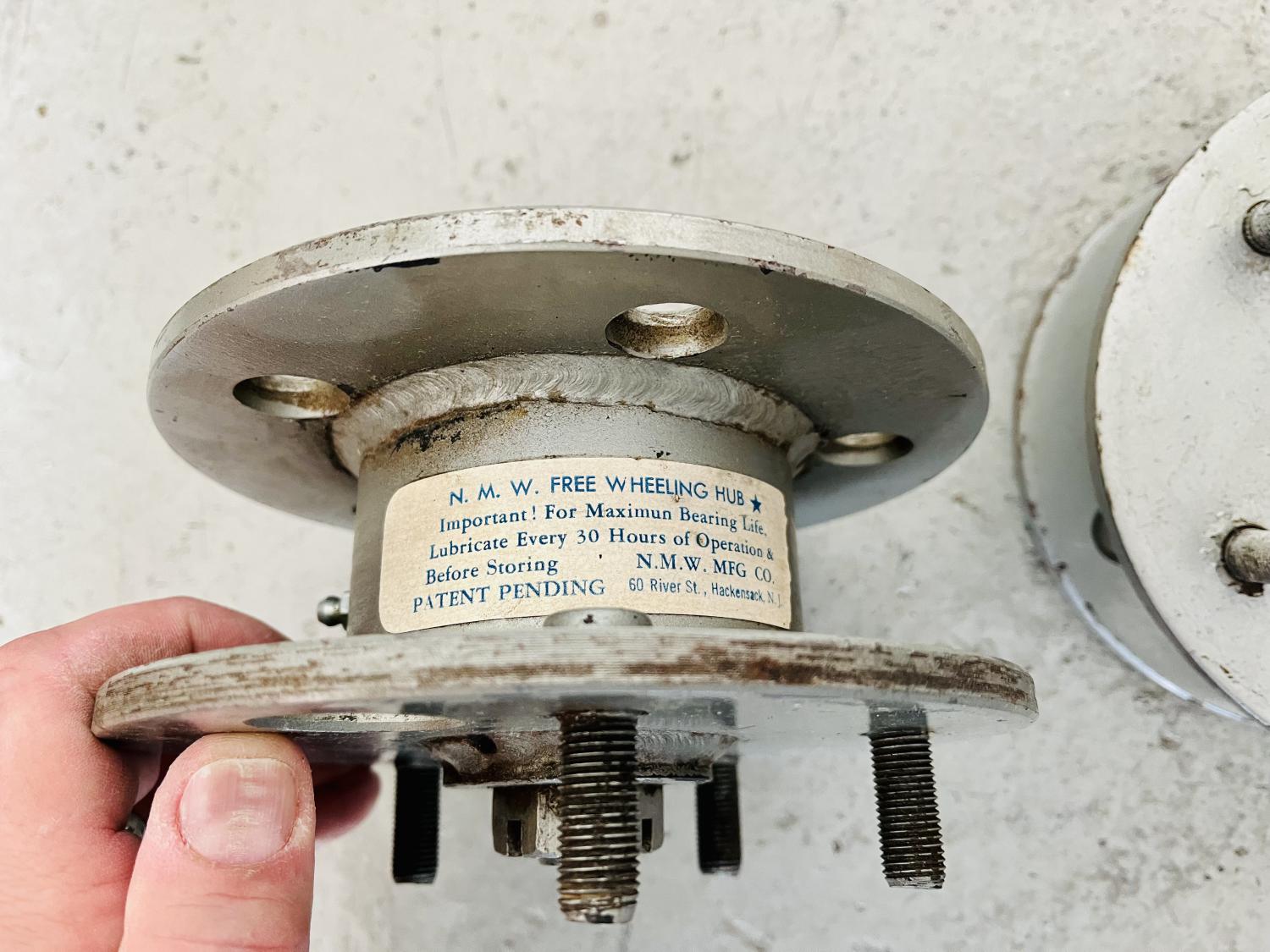I have an NOS pair of early NMW freewheeling tow hubs, part number FWH-102. These are GM 5x4.75 bolt pattern. The original paint and stickers are in excellent condition. Very hard to find these early versions. $375 plus shipping.