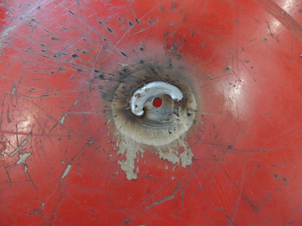 Also, some moron cut a hole in the top on the other side, OVER the locking drawer. Really? Guessing they probably mounted a fixture for holding something; who knows? Anyway, this is why I don't throw away much scrap metal. I cut a hole in this piece of scrap to patch the hole in the table. Ground down the welds and sanded it smooth (almost.... hey, this isn't body work).