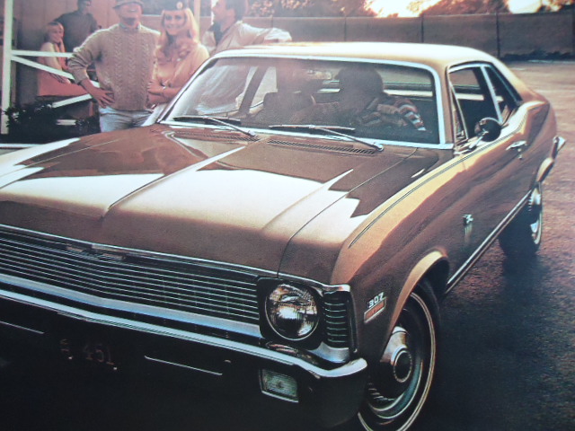 The car is a 1970 Chevrolet NOVA SS 396 bored over to a 402 from the factory but the cars emblems are 396 ( which was original) Fathom blue on factory rally wheels, blue interior ( i believe vinyl but could be leather) Deluxe trim package. The car could have a different breather set up now, but when it sold it had a Z28 cow plentum breather.