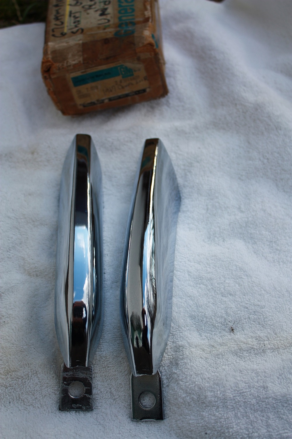 NOS rear 1967 bumper guards PN 3916609. Some light scratches from moving in box. See pictures. $200 plus shipping.