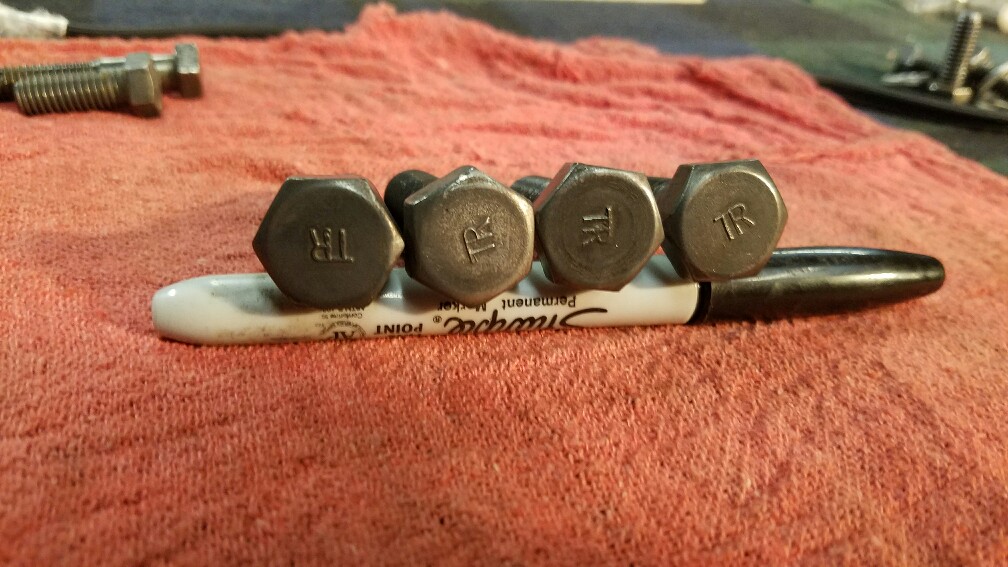 Medium font TR transmission to bellhousing mounting bolts. Excellent restored condition. $60 ship to the lower 48 if paid with PayPal friends and family.