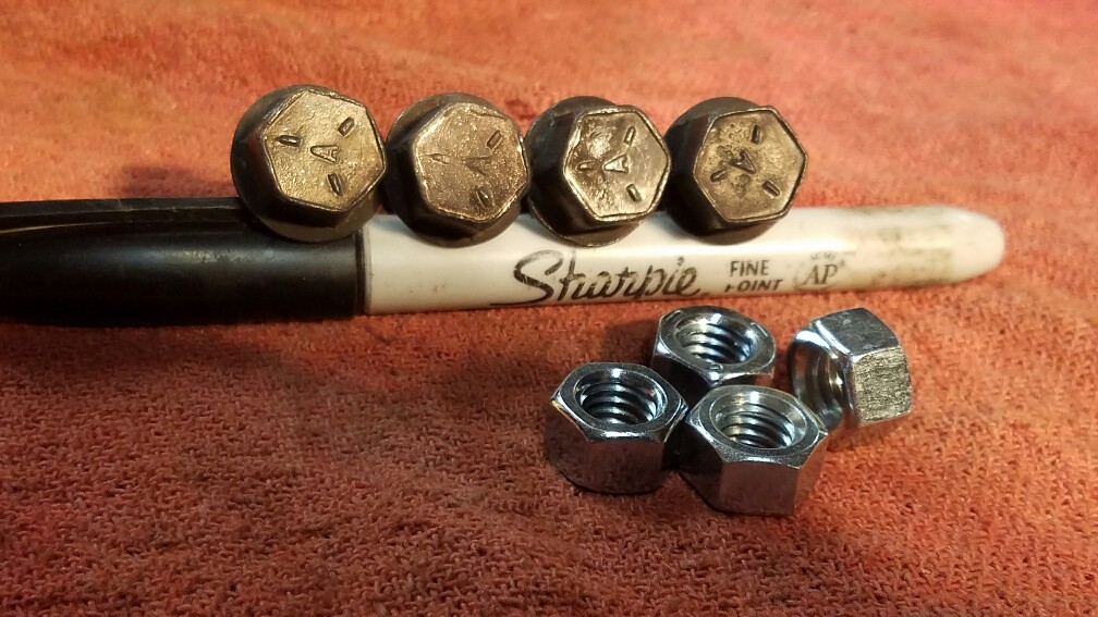 Complete set of four restored original shallow recessed head a head marking volt 4 Camaro Chevelle Nova and Paula GTO cross members. They do not reproduce this Bolt and they're very hard to find. $65 shipped to the lower 48 if paid with PayPal friends and family.