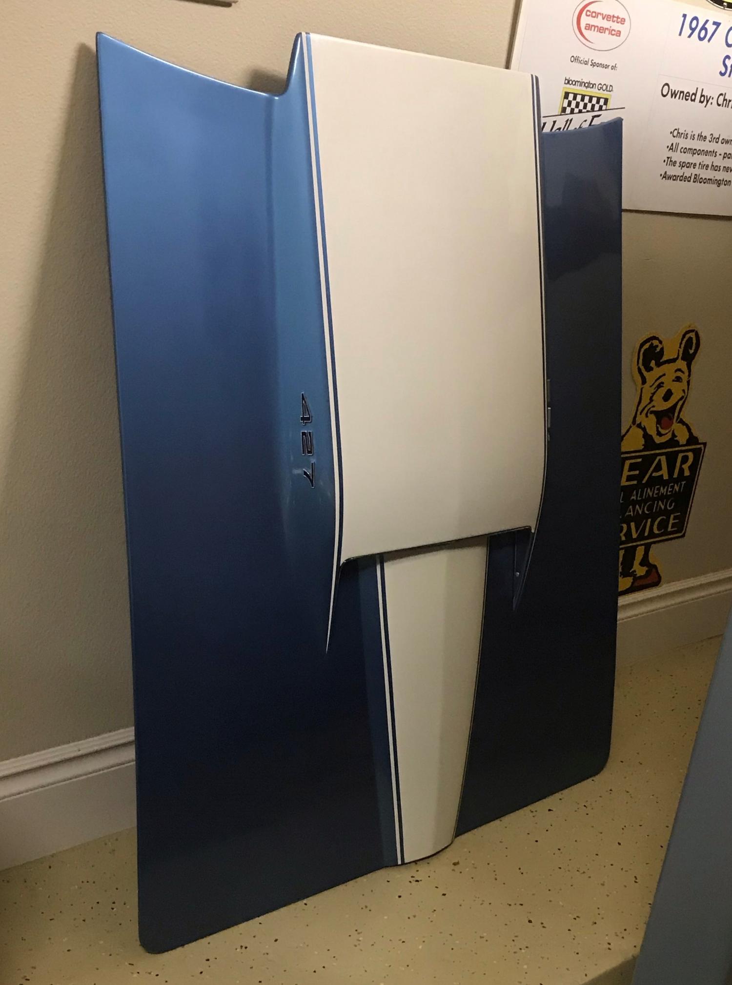 I saw people posting pictures of pieces of wrecked/stripped off parts in the 70 Cuda thread. So I thought it would be a good tread to start in here. I'm sure plenty of people have stuff like this hanging in their shops they'd like to show (I know I have plenty). I'll start, I cut this out of the back deck of a 67 Vette with a saws all ( that I cut up the rest of the body with) that we stripped as a rollover.