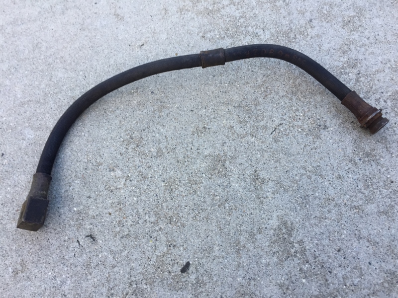 See below for photos, I believe the technical name is "Gold Chicken Lips"... I just have the one - the part number is not entirely legible to me, but I can make out the "SAE" at the end. it's pliable, but tiny cracks show - no other obvious damage / cuts, BUT I wouldn't use it on a road going car of course and as such am selling it as DISPLAY only - I am not endorsing using this ~50 year old part in your braking system, but rather for a template maybe? Red stenciling and SINGLE crimp ends as shown. NOW $20 PPFF shipped to the 48. Take a look at the photos, thanks. Anthony Last edited by AnthonyS; 04-15-2020 at 07:38 PM. Reason: give away now |