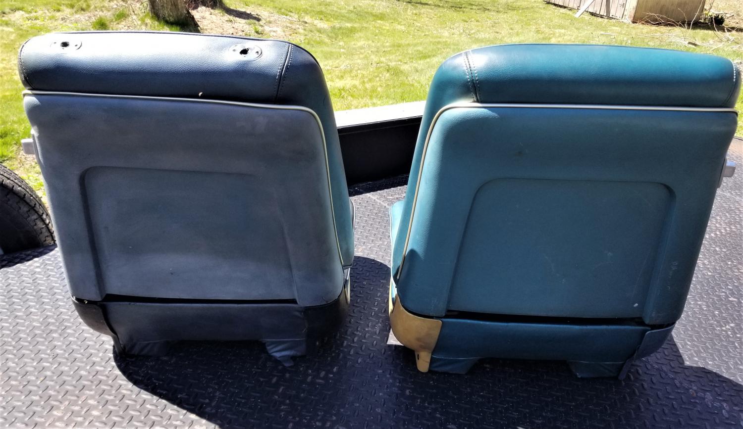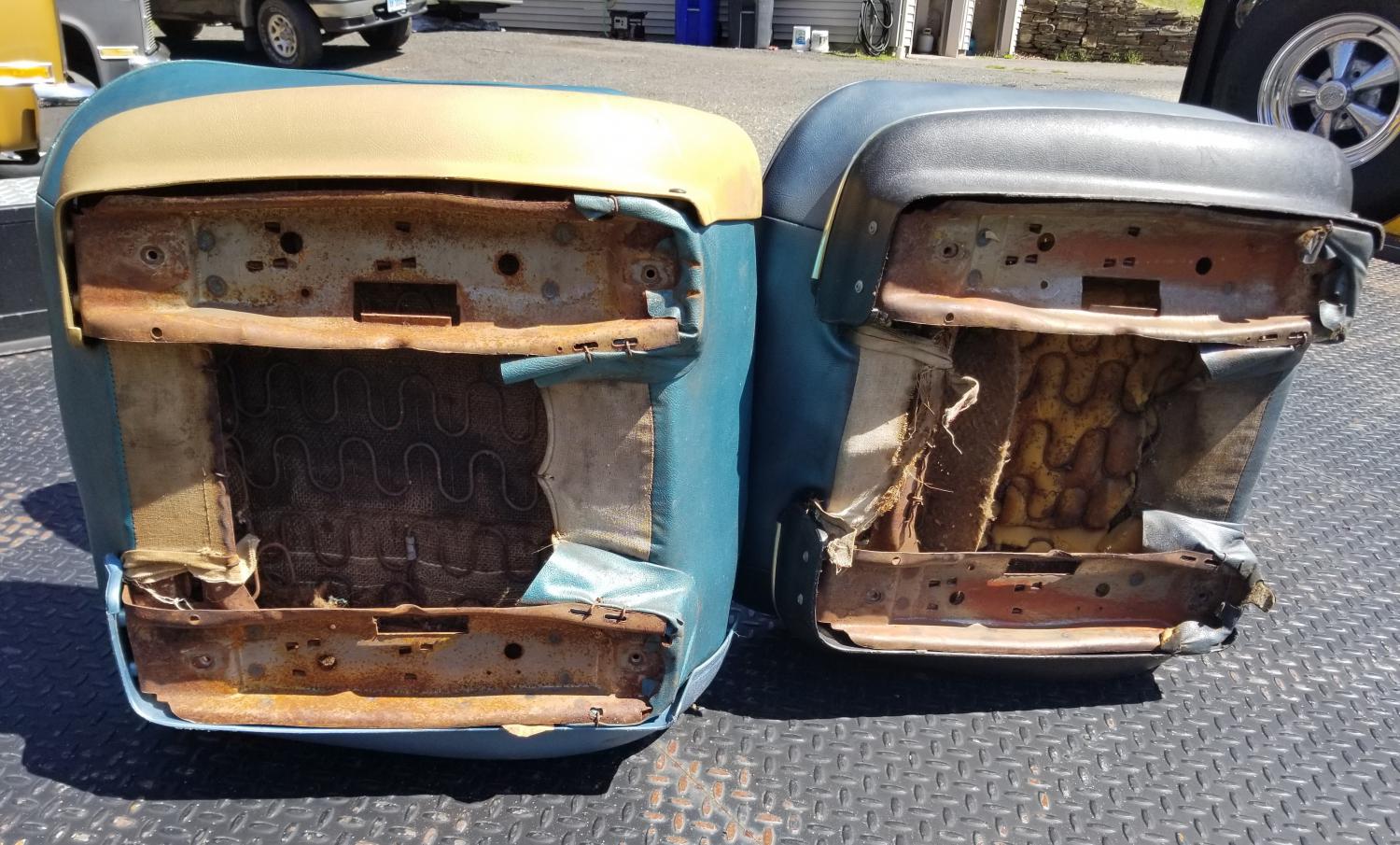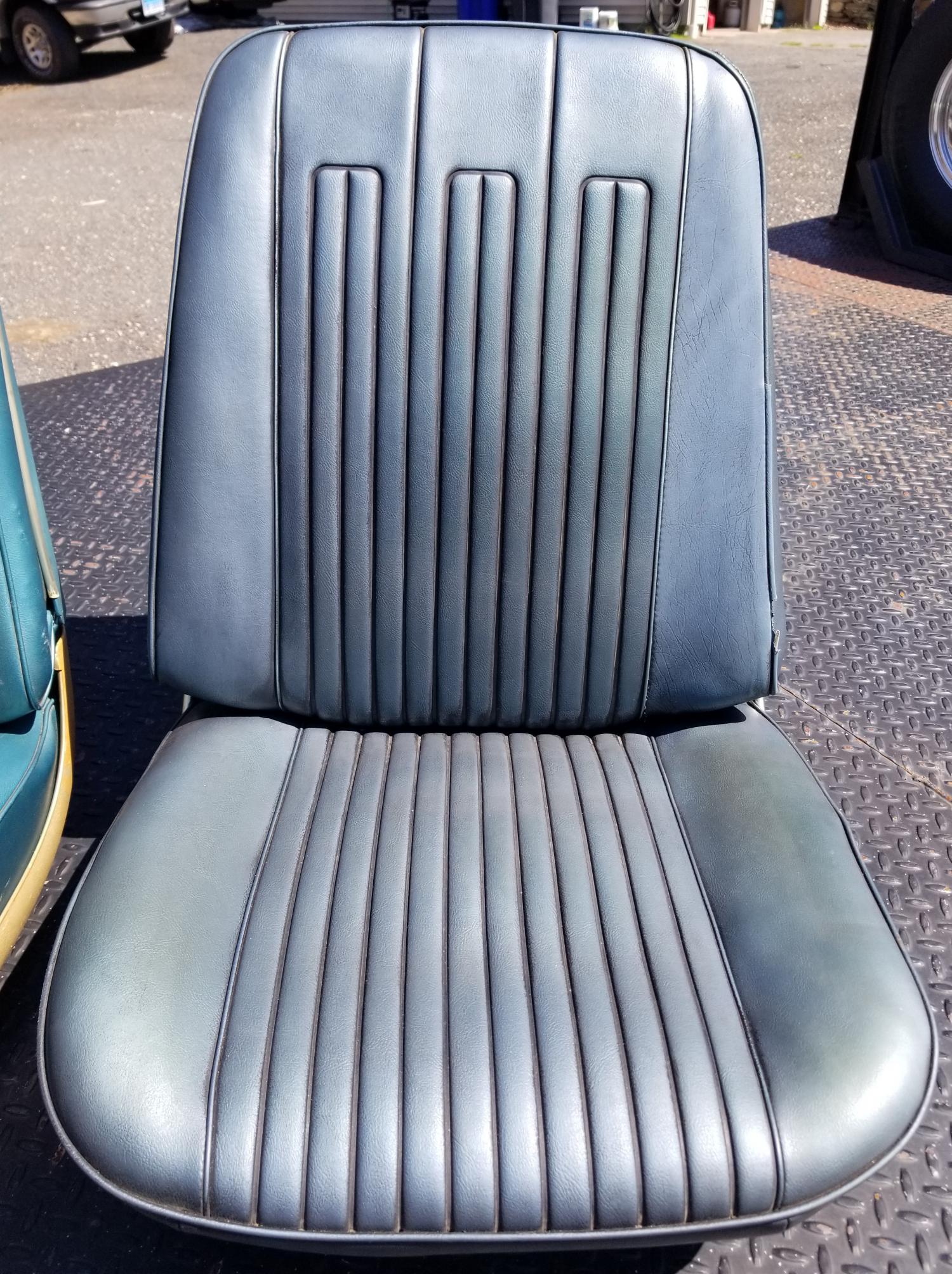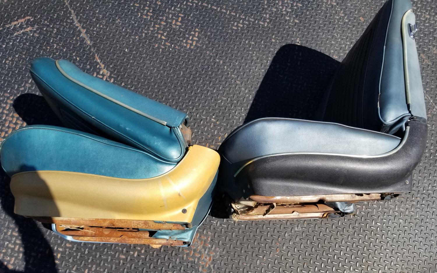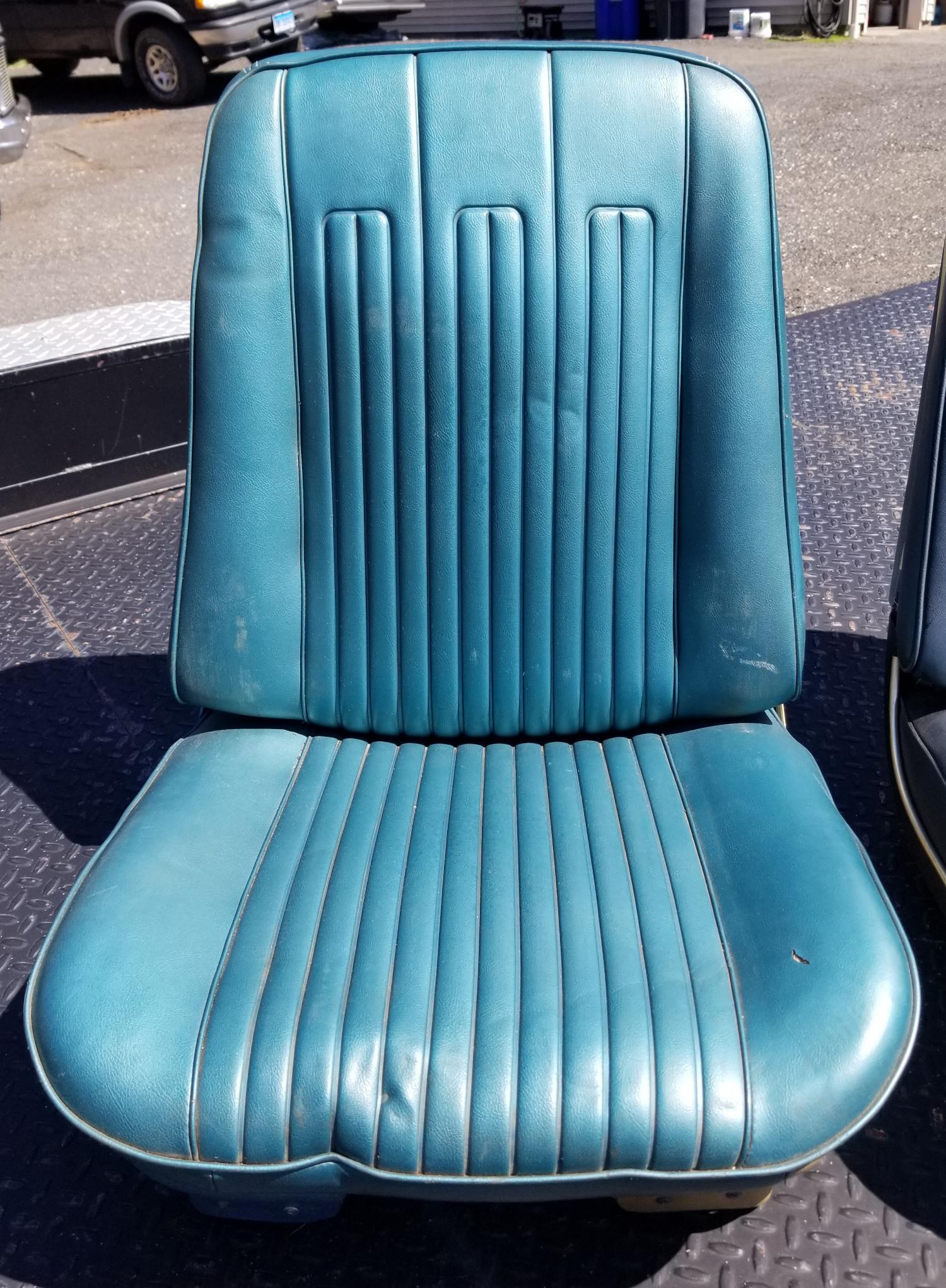 Pair of 1968 Pontiac GTO bucket seats. Very solid restorable cores or spray dye and use as is. Mechanically perfect frames with only minor surface rust. Excellent chrome latch releases. Cushions seem fine. Don't look to ever been a home to rodents. BONUS...one has provisions for optional headrests. Will fit other GM A bodies. $800.00 plus shipping.
