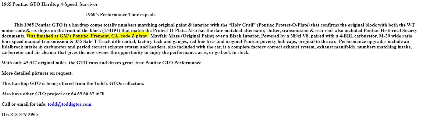 Link to 1965 GTO Original Paint Survivor eBay auction ![]() ![]() ![]() ![]() ![]() 237375K112613 |