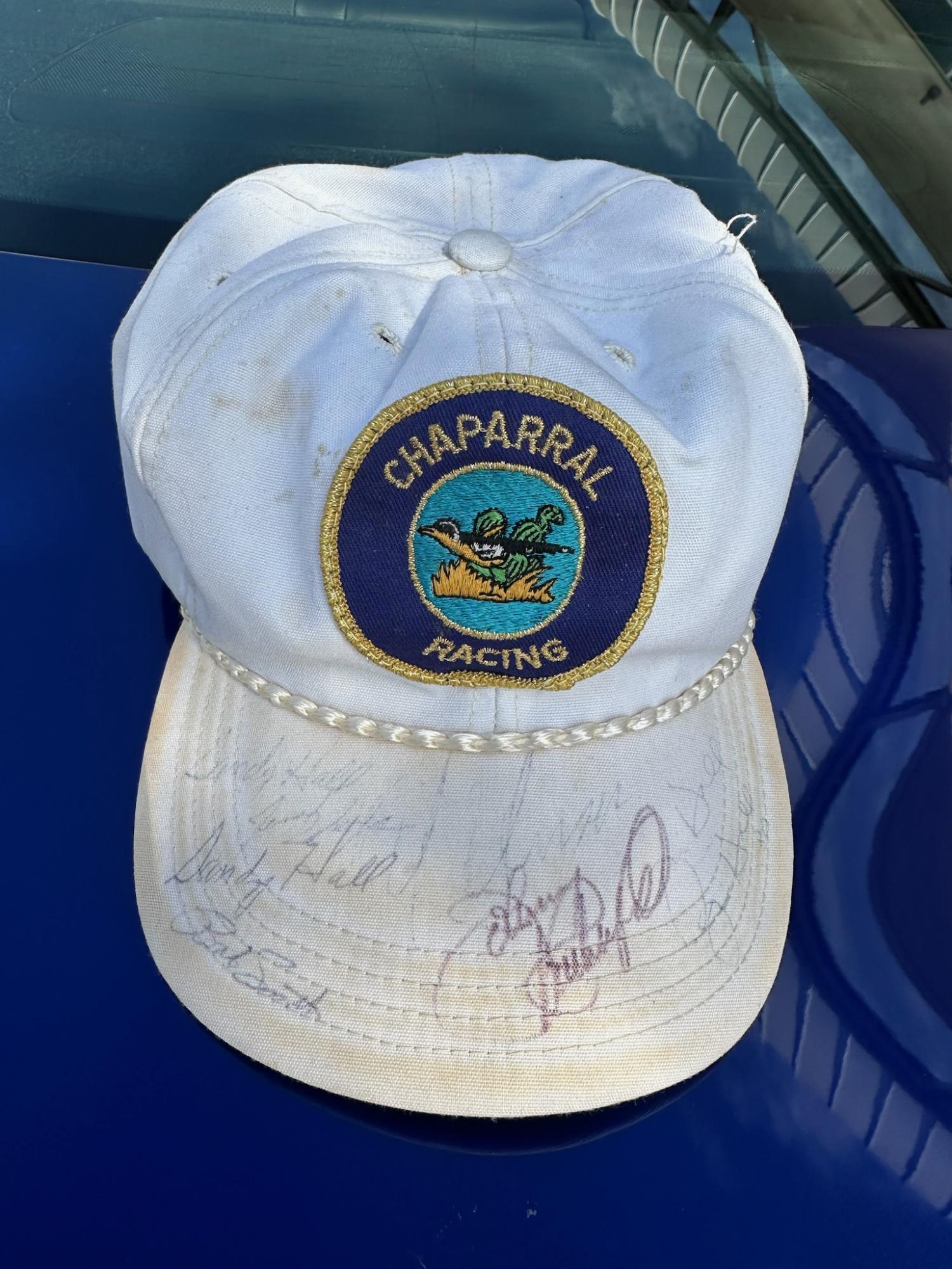 I found this hat signed by Jim Hall, Sandy Hall, Johnny Rutherford and Bob Smith.