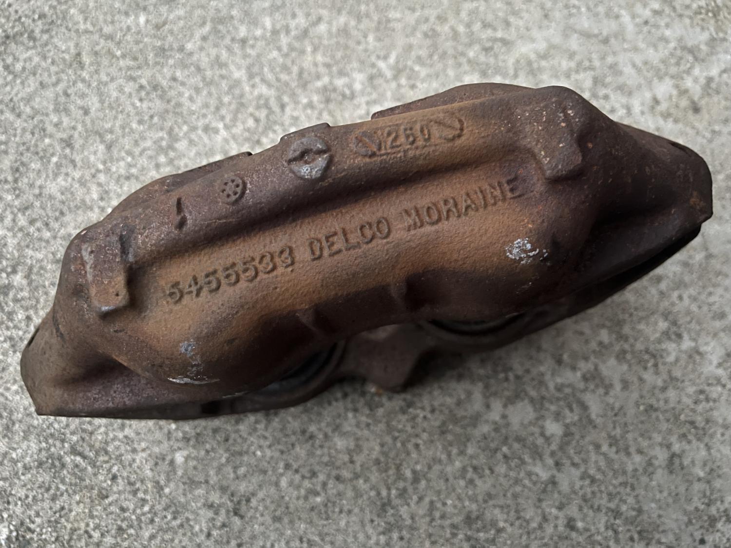 As the title says and the many detailed pics below show - one core caliper available here. LH Left Hand / driver side original GM caliper - Delco Moraine - this is the harder to find side... 5455530 inner half dated 229 and the outer 5455533 half dated 250 - certainly an original, never separated, pair. Just the one caliper core, I'm told it's a recent take off. 165.00 shipped in the US via USPS priority with tracking. Thanks all, Anthony |