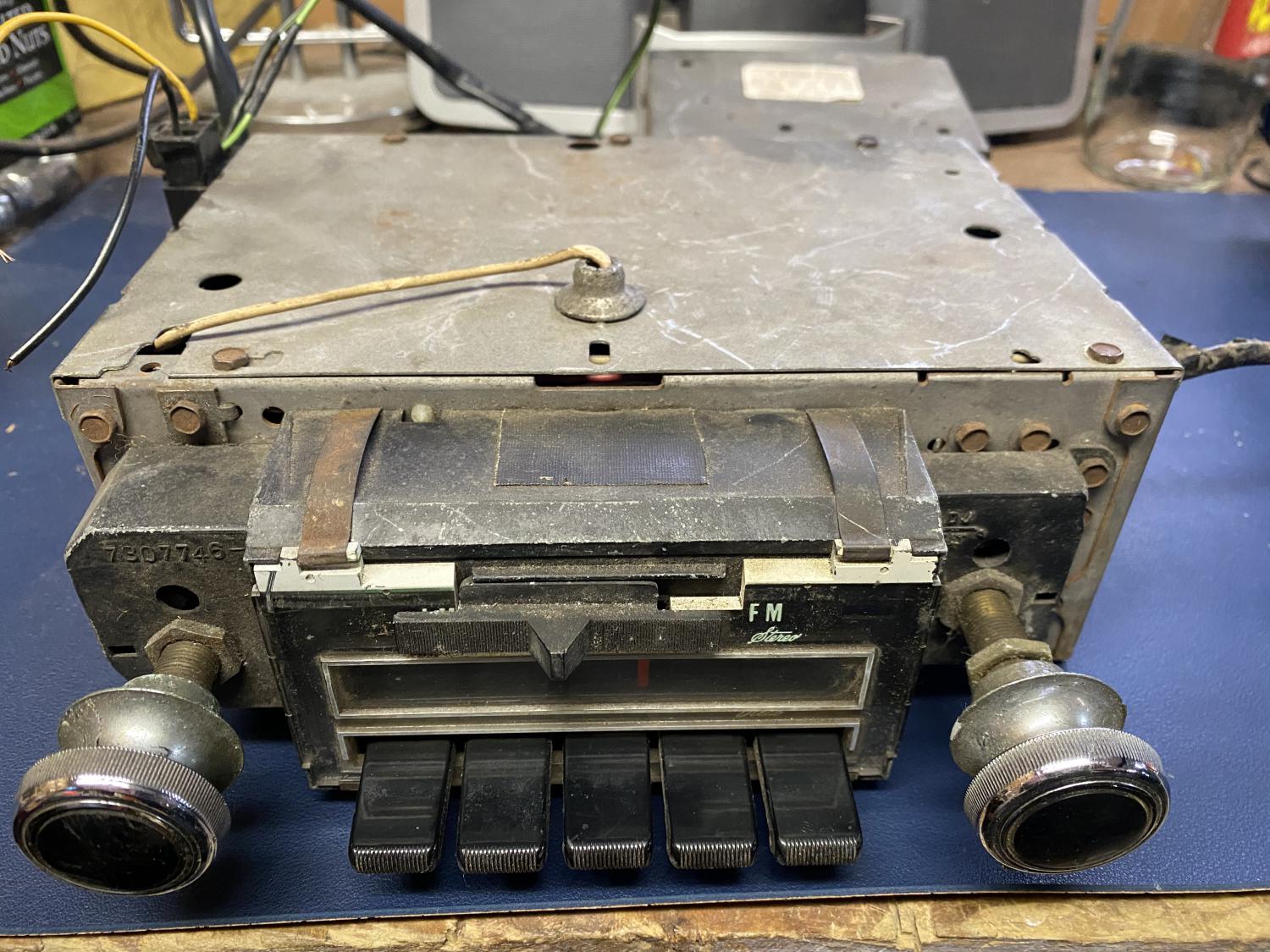 I pulled this stereo assembly out of the dirtiest 1969 Chevelle wagon, probably 25 years ago. Found it in a box and hooked it up today, and it plays loudly and clearly on all four channels, kind of amazing. There is some scratchiness in the volume control as always, which you can address with electronics cleaner such as Deoxit. Will clean up beautifully, but is still generally filthy as shown. I do have a video of it playing local stations if someone's interested in hearing it. I think $700 plus the ride is a fair price. Includes both front kick panel speaker harnesses and a stub harness to the rear two speakers.