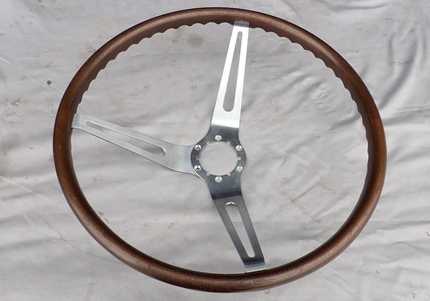This is an awesome original GM simulated walnut wood steering wheel. This wheel was standard equipment on 1967-1968 Corvettes and was optional on Camaros, Chevelles, Novas, Corvairs, and Chevrolet fullsize models. It was also optional on some Buick and Olds models. This wheel has a 16 inch diameter and 4 inch offset.