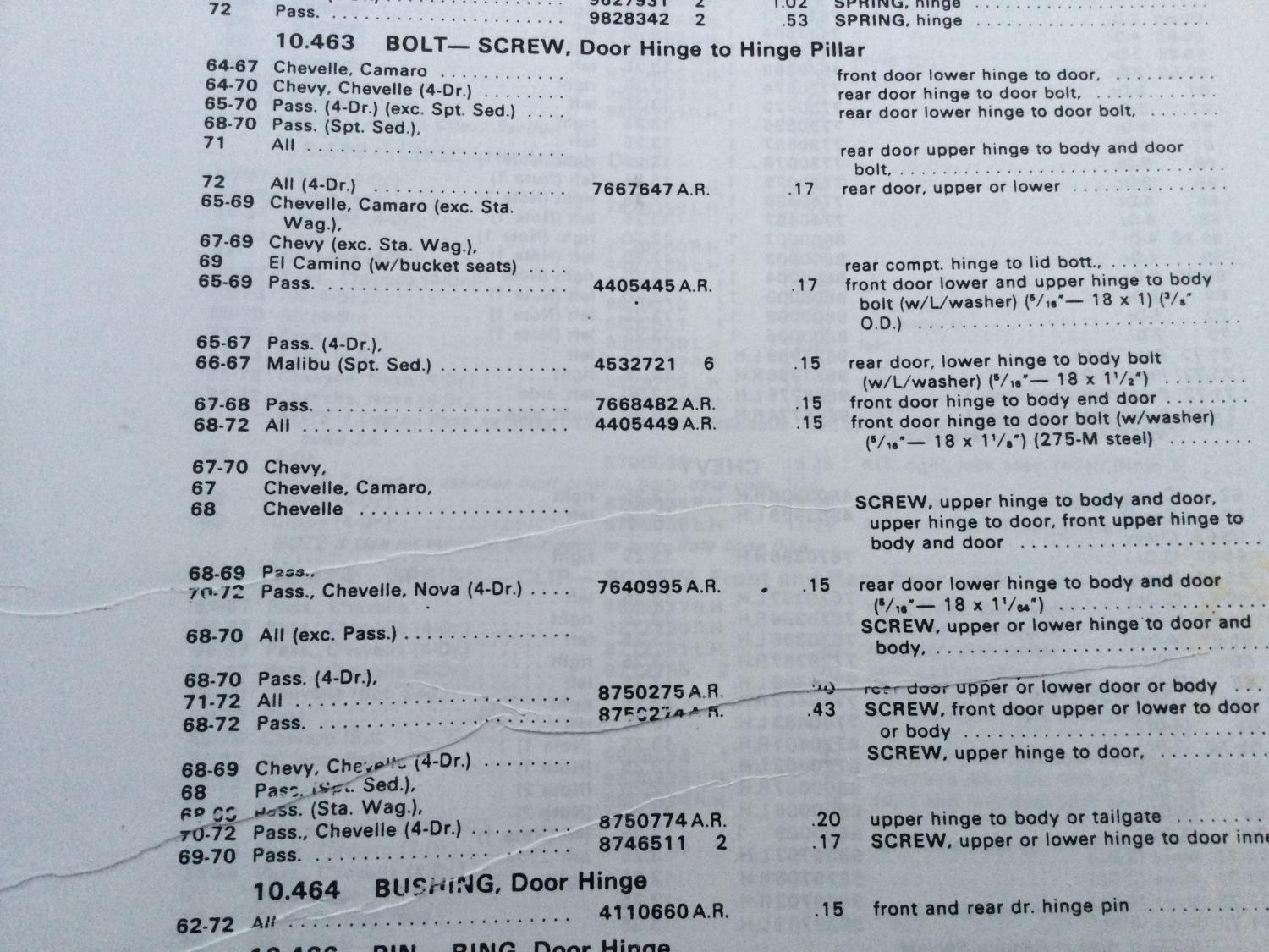 Well, after 26 years of ownership my upper door hinge has begun to sag on the drivers side. I'd prefer to rebuild the original hinge if possible rather than replacing it with an aftermarket part. Those of you that have done this, have you been able to find GM pins or are there aftermarket ones that actually fit? I ran across this GM part number (20046147) in my search last night and per what I've read, it should work, but I may have to cut some length off of the pins to make them the correct length, which is no big deal. I haven't dug up a part number yet for the bushings, so if any of you have one, it would be much appreciated. Thanks.