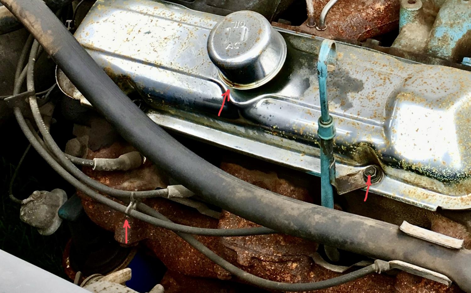 This car was for sale a few years back, but I can’t recall where I saw it, plus there wasn’t much information on it. I remember they were asking a lot of money for it. From the photos I saved it looks to be a legitimate Survivor. 01D Baltimore built. Original paint LL Teal Turquoise with a White pinstripe. 218 Parchment interior. I would love to see the PHS etc. on this car. Here is what I see from the dusty photos. Tri-Power, 4 speed. HD 4 core radiator. HD fan with the notched blades. Early round head aluminum rivets (small clutch ?) The above notched blade indicates a possible 3.90 gears. Rally gauges. Wood steering wheel. AM radio. 2 speed wipers with dated wiper motor. Outside rear view mirror. Back up lamps. Correct numbered upper radiator hose. Dated (4-Q-64) plug wires. All three carb tags. Early firewall wire harness clips, full metal, not rubber dipped. Possible custom wheel disc shown in trunk. Hopefully someone recognizes this car.