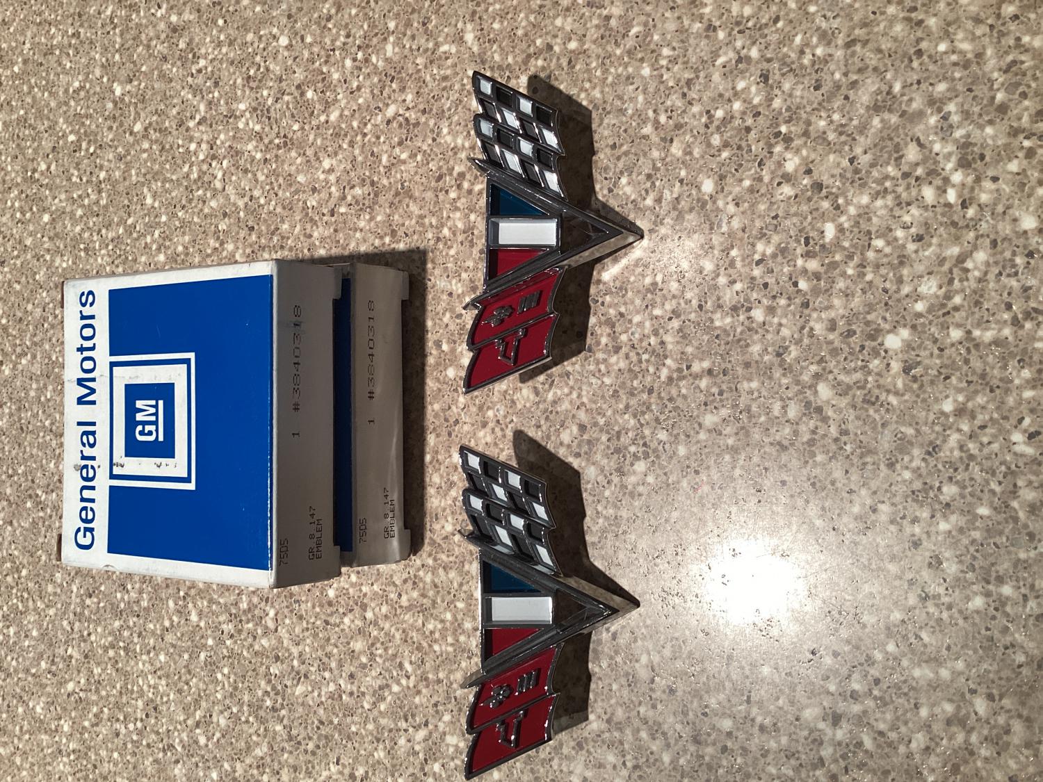 NOS GM emblems part numbers 3840318 in the boxes. These emblems are very nice. Both emblems are included.These fit many 1964-1967 vehicles including Camaro. Check your application. $75.00 plus shipping