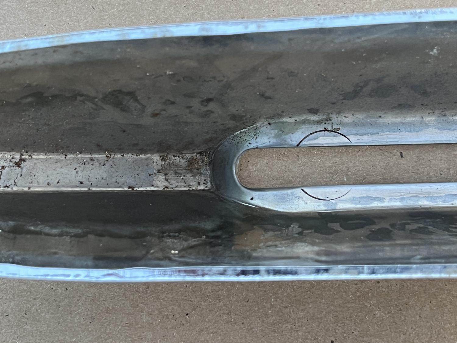 A seldom seen pair of 1967 Chevelle left 3895109 and right 3895110 front bumper guards - NOS with mint cushions / inserts. No nuts, seem to have been removed some time ago... They have parts stickers on them that are hand written; I'm not sure the story behind that, but they do appear NOS to me - just no boxes or instructions or hardware. No witness marks on the bottom bolt holes - just some visible on the inside where the rubber bumpers 986836 were once mounted. These will fit and appear correctly when installed as they are clearly unused GM parts. Look at the inside; these have never seen weather, IMHO. They are as straight as they ever were, not like most used ones found - that was literally their job; to bend (first). Should fit Canadian Beaumont cars as well. Hard to get across how nice the chrome is in photos of course, but I tried - see all the photos below. Not perfect, but these 60 year old GM chrome pieces never, or seldom were. The chrome presents very nicely, there is some shelf wear and a mark or two, but I doubt these were on a car long, if at all really. I wiped them down and these are nice. You will be pleased. Cheers all, Anthony |