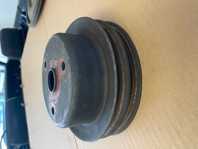 Nice clean pulley, still has phosphate coating, zero rust, two small ripples on the outside edge of the groove. Very light stamping, but a legit original GM piece. $175.00 + the ride.
