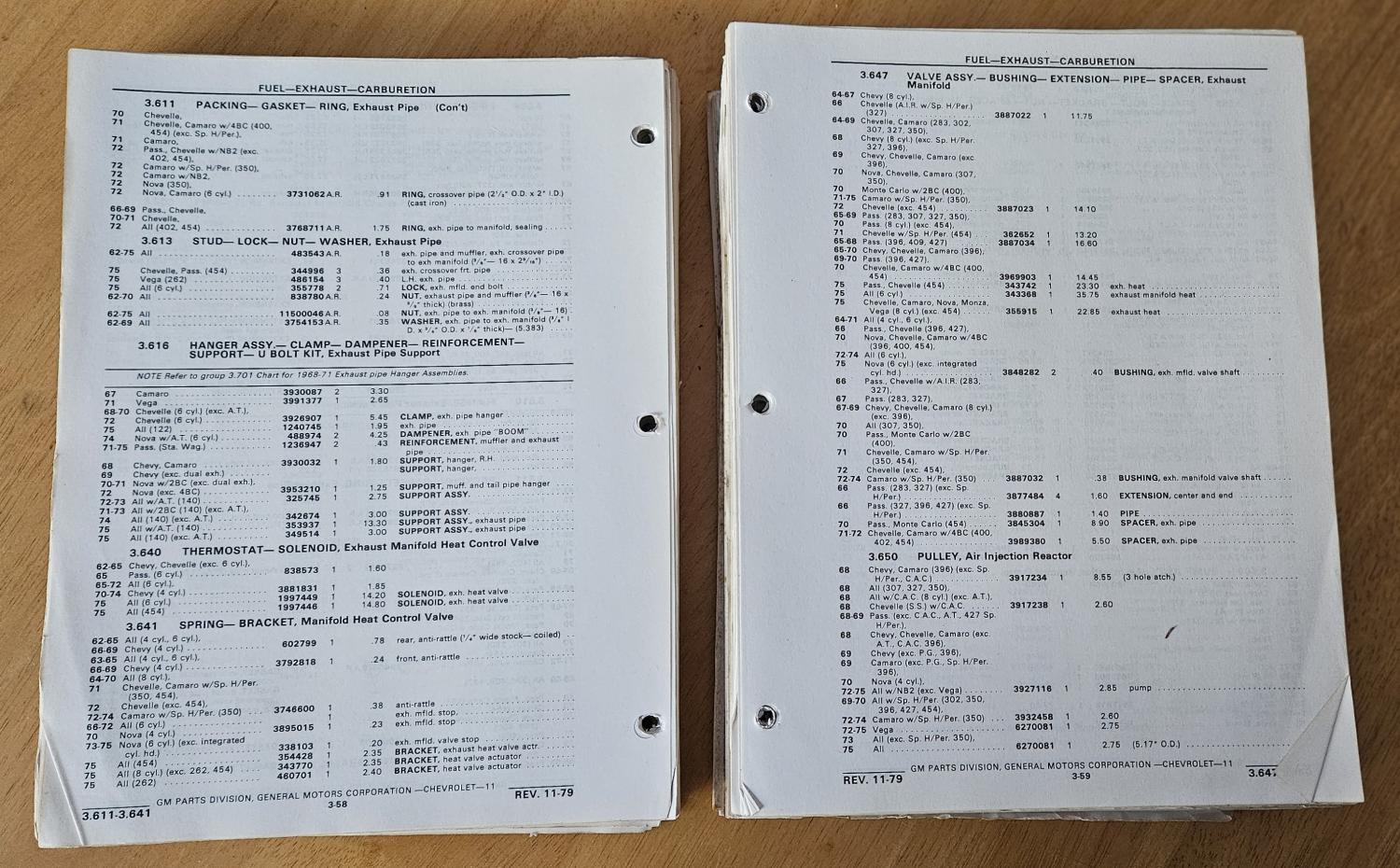 CHEVROLET PARTS BODY & CHASSIS CATALOG for models through 1975 printed NOV 1979 $100.00 plus shipping and PayPal fee.