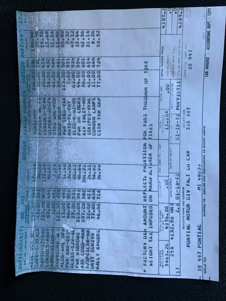 <div class="ubbcode-block"><div class="ubbcode-header">Originally Posted By: StealthBird</div><div class="ubbcode-body">Steve, do you recall the black 72 Formula 455HO 4-speed on E-bay, I think around 2009? I believe that was out of Wilson Pontiac in MD. I think I have the invoice for that car. I recall it having the rear spoiler, but Rally II's.
