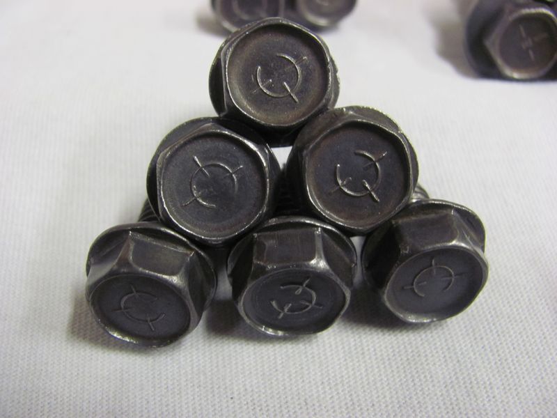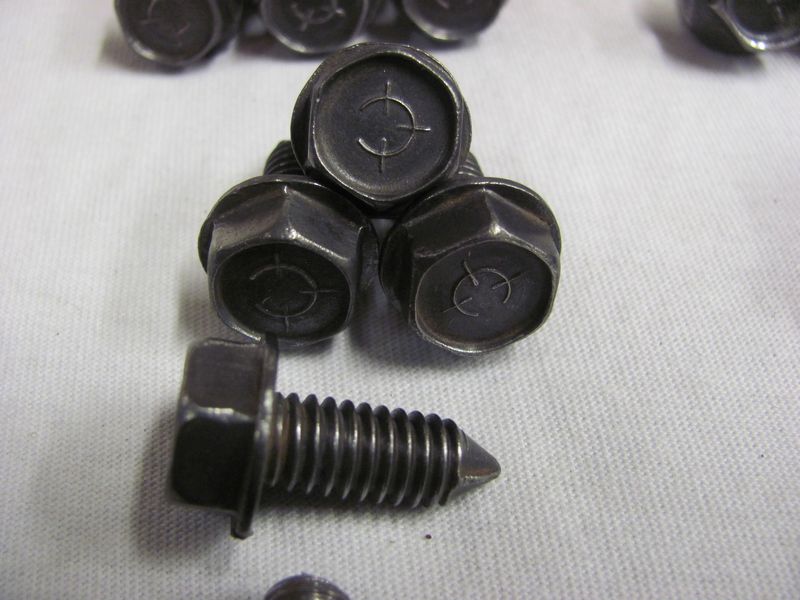 Included are: 10 Anchor over TEE fender extension to fender bolts (GM PT # 4960314) 12 E wheel well lip to fender mounting bolts (GM PT# 3846202) 6 Anchor over TEE fender to header mounting bolts (GM PT# 4940314) 4 Wheel well to radiator support bolts (GM PT# 3846202) 6 C fender extension to lower valance bolts (GM PT# 4960314) 4 E Hood Latch to hood bolts (GM PT# 3846202) 4 E hood catch to radiator support/header bolts (GM PT# 3846202) 4 C radiator support to shroud bracket+valance and grill support to radiator support bolts (GMPT# 49603140 4 Anchor Fender (by hood height adjuster) to radiator support bolts (GM PT# 3846201) 2 Anchor and 2 C fender brace rods bolts GM PT#'s 3846201 + 4960314) 4 flying f wheel well brace to firewall bolts (GM PT# 3856065) ALL ARE IN EXCELLENT ORIGINAL CONDITION. 675.00 |