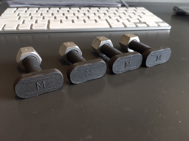 Four t bolts and the correct original lock nuts, t bolts with "M" head marking are dark phosphate, nuts are white cad, they are in near perfect condition, could be nos. $70 plus the ride |