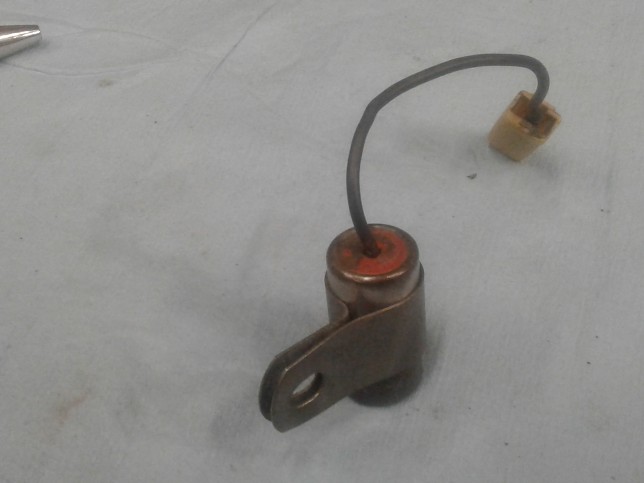 Very nice original 1965 up voltage regulator capacitor part number stamped 1964086. Also includes white terminal end and clamp. Very nice piece. $35.